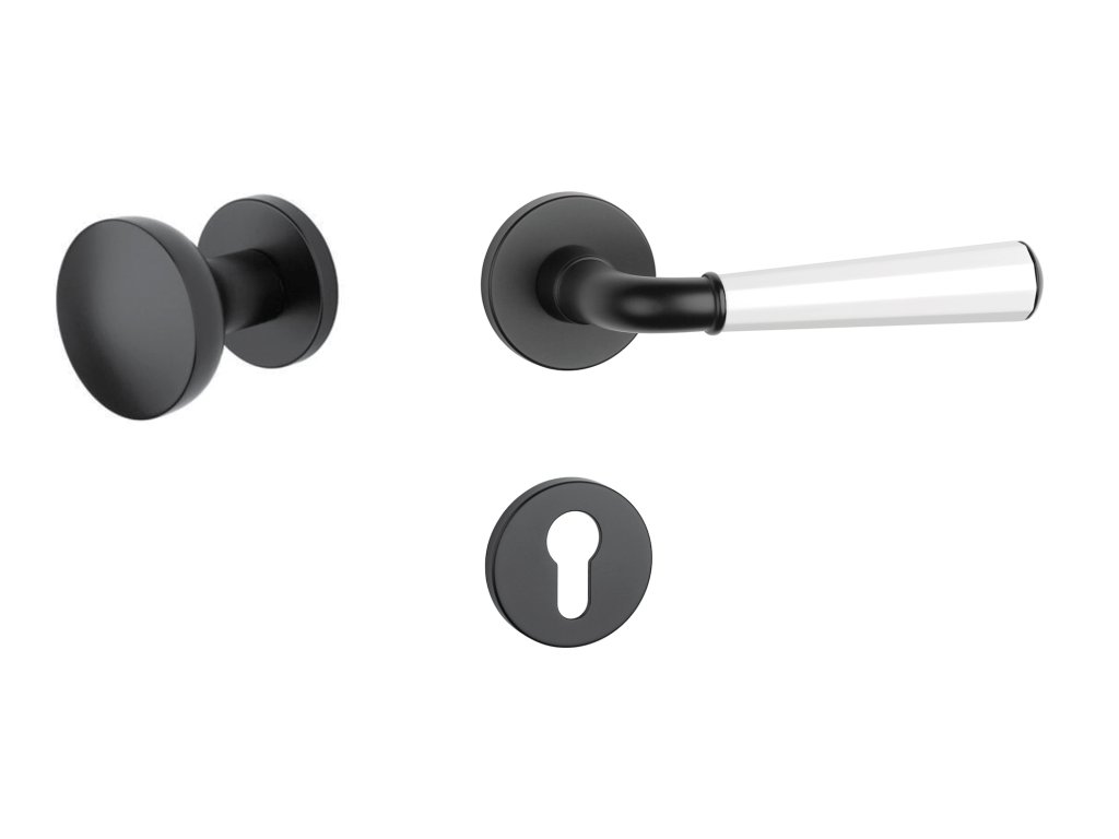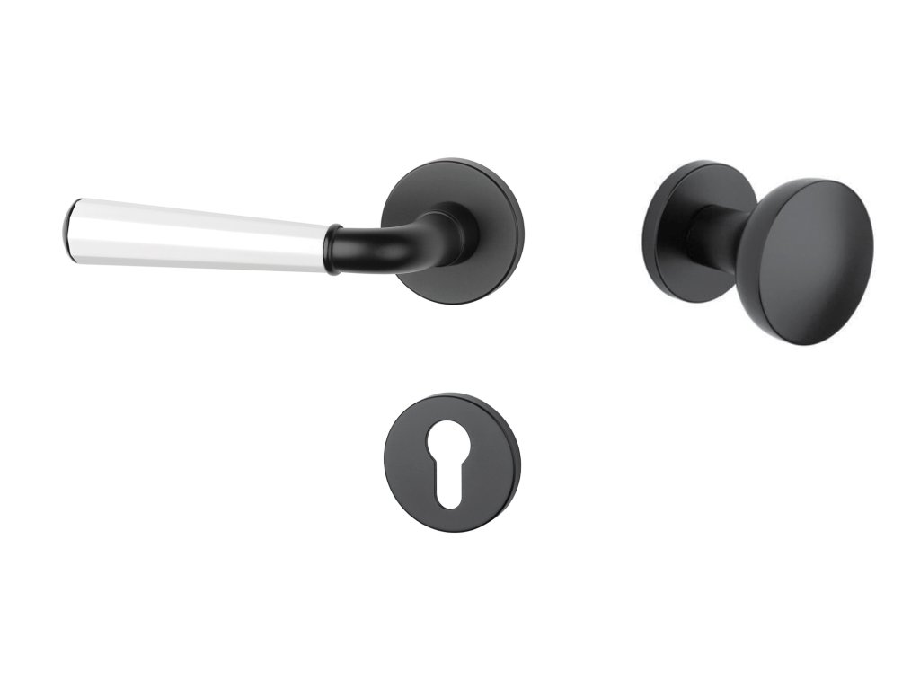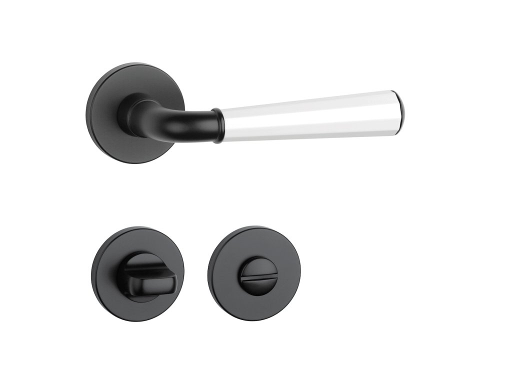 Mechanizmus kľučky obsahuje vratnú pružinu. Výstupky na rozete zabraňujú jej pretáčaniu a skrutky na preskrutkovanie cez celú šírku dverí zaručia pevnejšie a stabilnejšie uchytenie kovania.