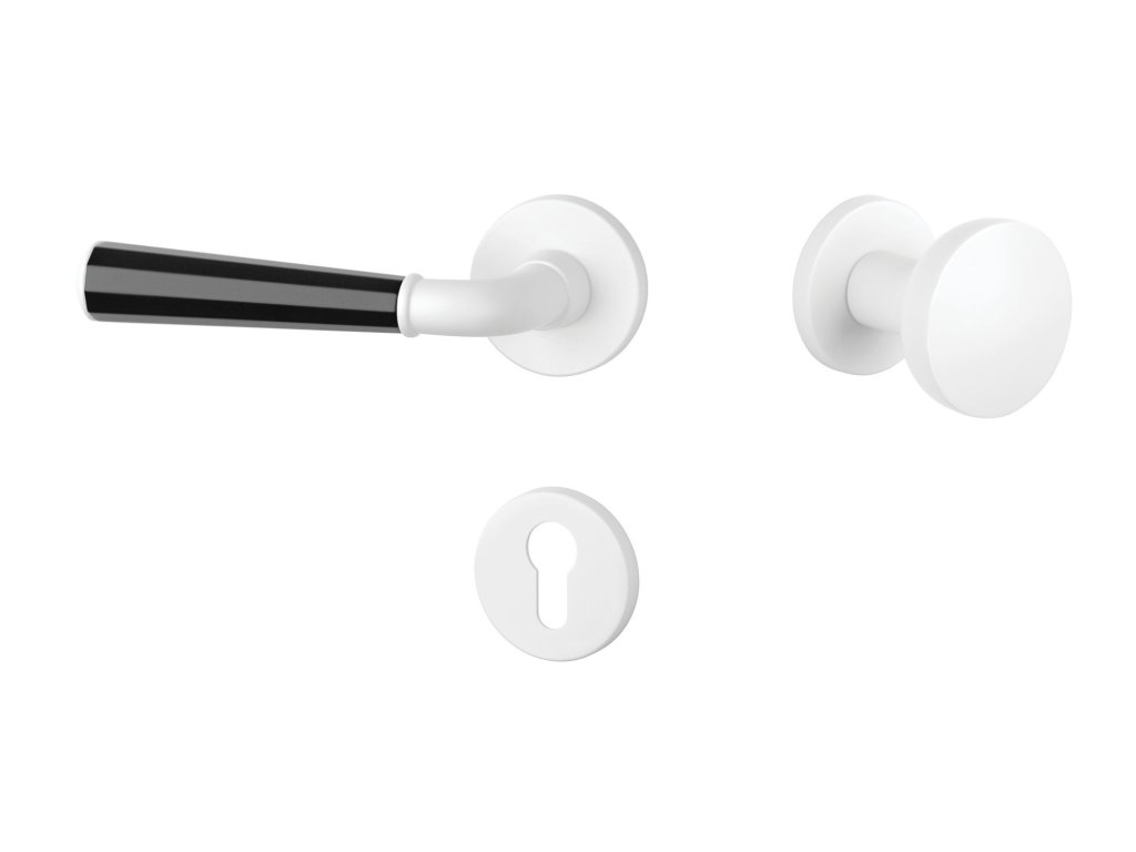 Mechanizmus kľučky obsahuje vratnú pružinu. Výstupky na rozete zabraňujú jej pretáčaniu a skrutky na preskrutkovanie cez celú šírku dverí zaručia pevnejšie a stabilnejšie uchytenie kovania.
