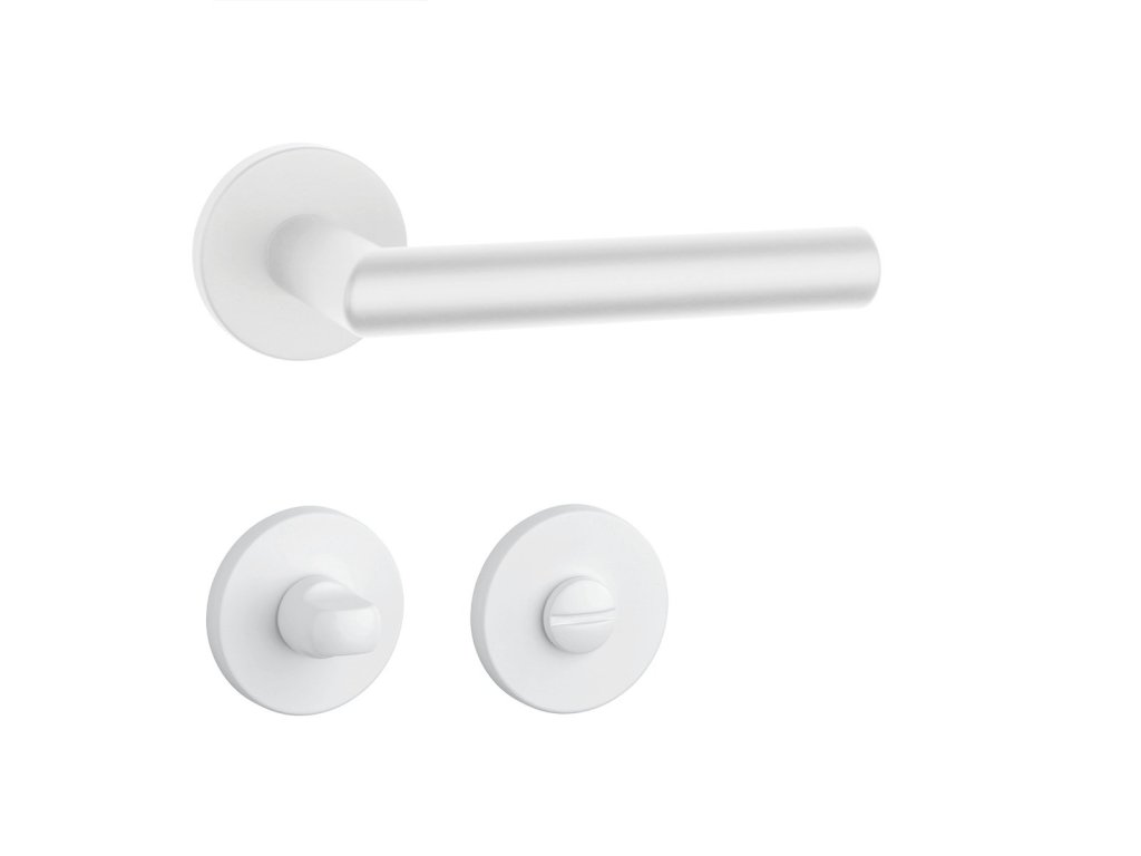 Rozetová kľučka na interiérové dvere s okrúhlou rozetou je vyrobená z materiálov vysokej kvality - zamak a je povrchovo upravená. Rozeta má priemer 53 mm a hrúbku len 7 mm. Minimalistický dizajn rozety s vysokou stabilitou kľučky na dverách pôsobí jemne, a tým ponecháva priestor pre vyniknutie dizajnu samotnej kľučky.