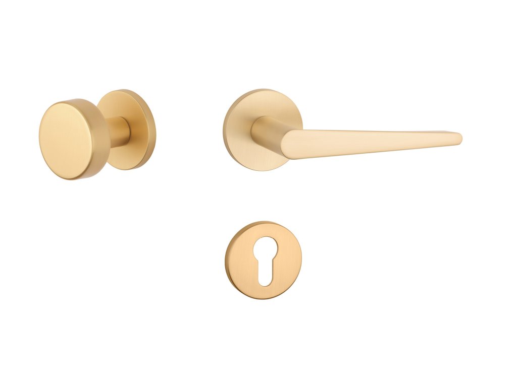 Rozetová kľučka na interiérové dvere s okrúhlou rozetou je vyrobená z materiálov vysokej kvality - zamak a je povrchovo upravená. Rozeta má priemer 52 mm a hrúbku len 7 mm.