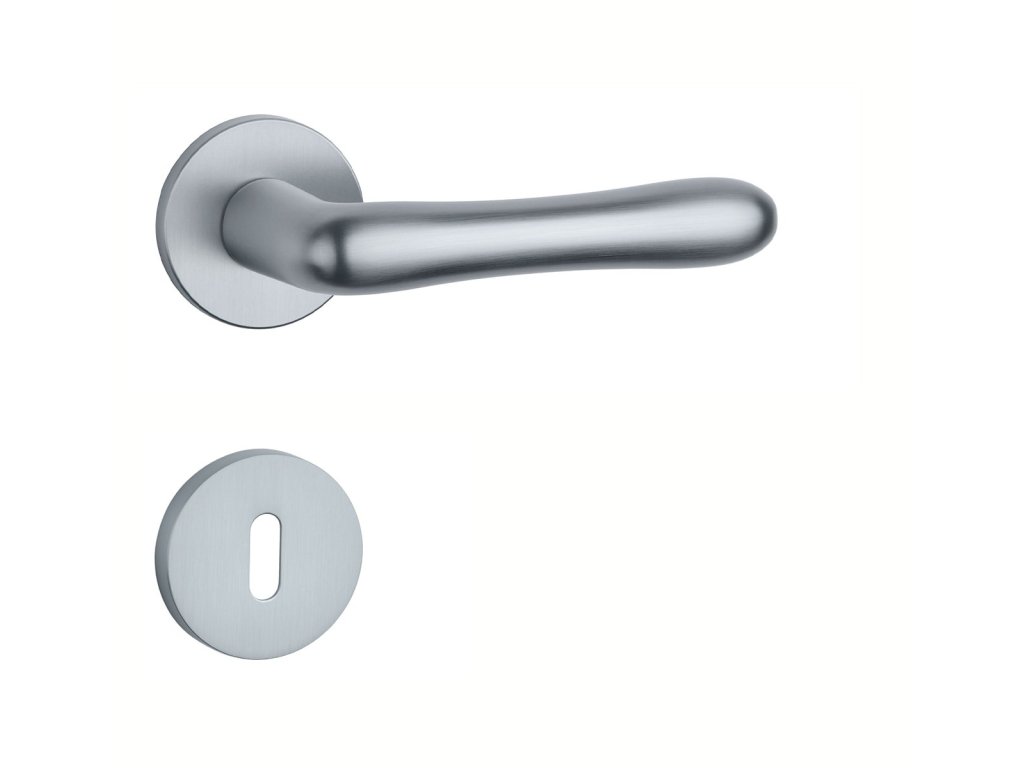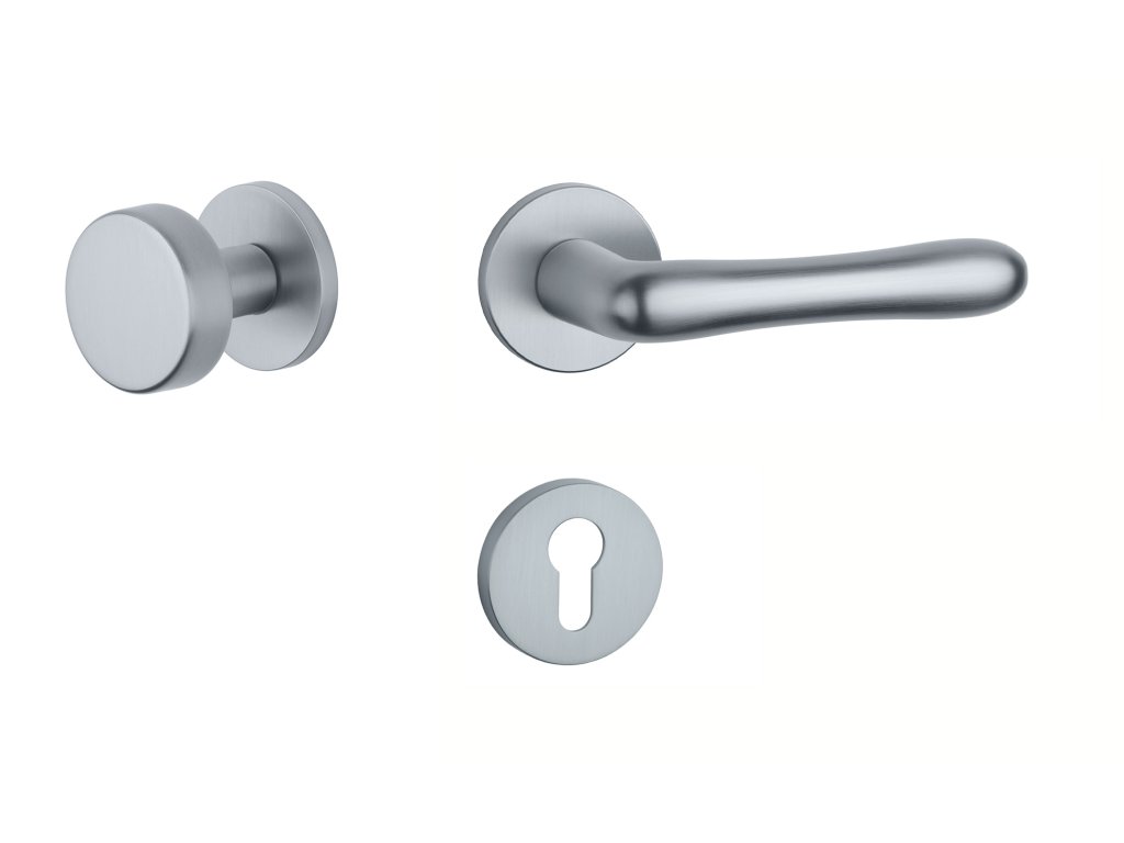 Rozetová kľučka CYNIA na na interiérové dvere s okrúhlou rozetou je vyrobená z materiálov vysokej kvality - zamak a je povrchovo upravená. Rozeta má priemer 52 mm a hrúbku len 7 mm. Minimalistický dizajn rozety s vysokou stabilitou kľučky na dverách pôsobí jemne, a tým ponecháva priestor pre vyniknutie dizajnu samotnej kľučky.