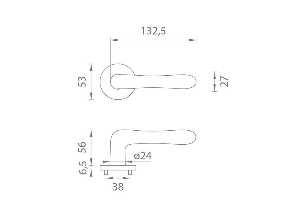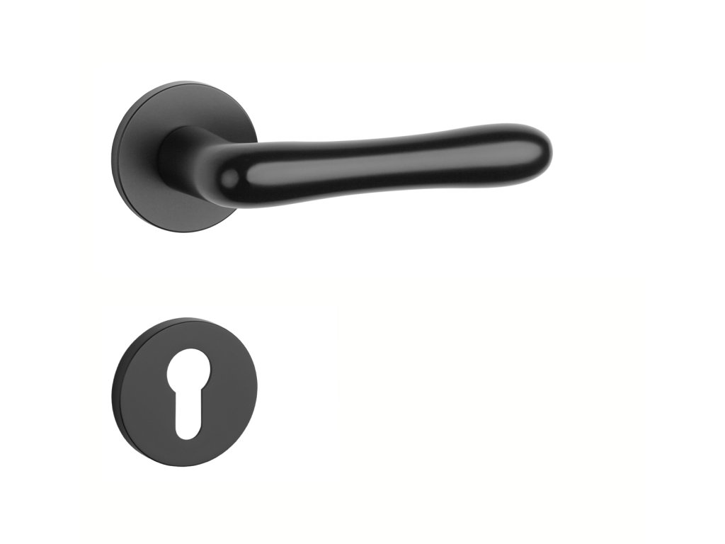 Rozetová kľučka CYNIA na na interiérové dvere s okrúhlou rozetou je vyrobená z materiálov vysokej kvality - zamak a je povrchovo upravená. Rozeta má priemer 52 mm a hrúbku len 7 mm. Minimalistický dizajn rozety s vysokou stabilitou kľučky na dverách pôsobí jemne, a tým ponecháva priestor pre vyniknutie dizajnu samotnej kľučky.