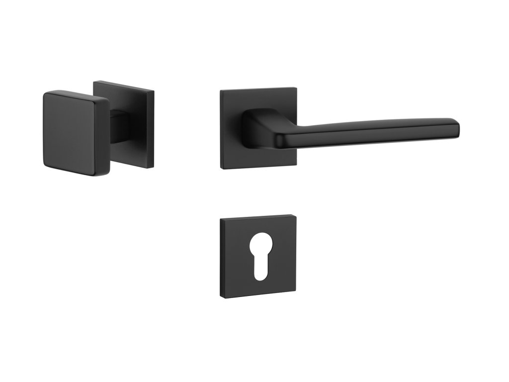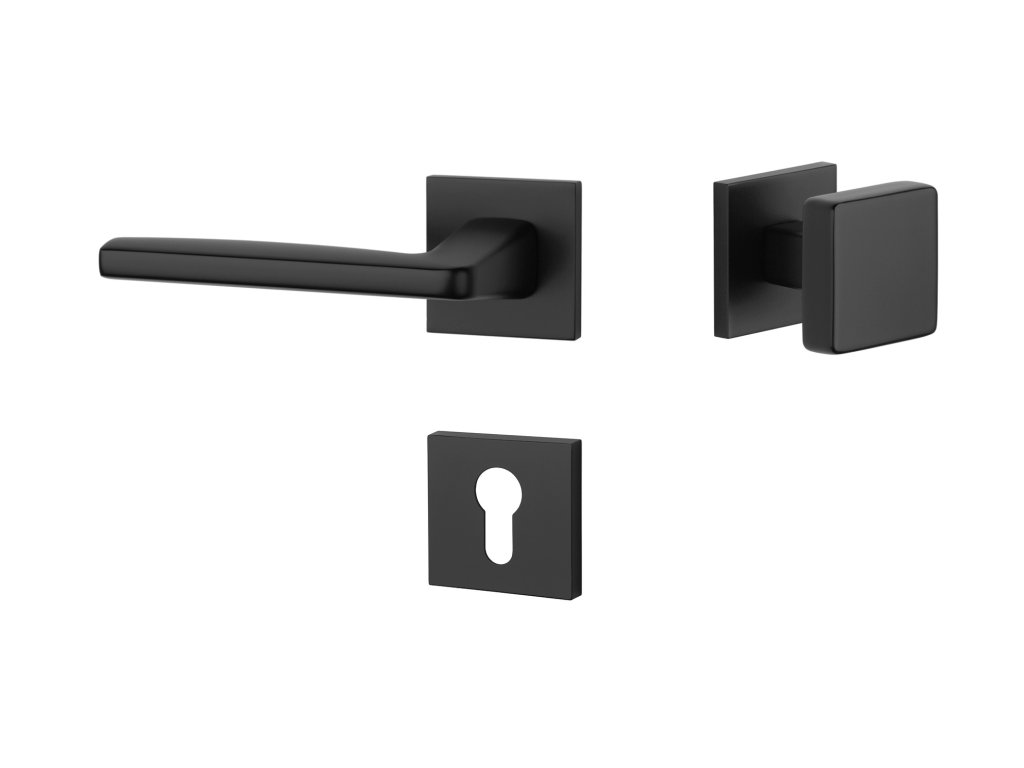 Rozetová kľučka na interiérové dvere s hranatou rozetou je vyrobená z materiálov vysokej kvality - zamak a je povrchovo upravená. Rozeta má rozmer 53x53 mm a hrúbku len 7 mm. Minimalistický dizajn rozety s vysokou stabilitou kľučky na dverách pôsobí jemne, a tým ponecháva priestor pre vyniknutie dizajnu samotnej kľučky.