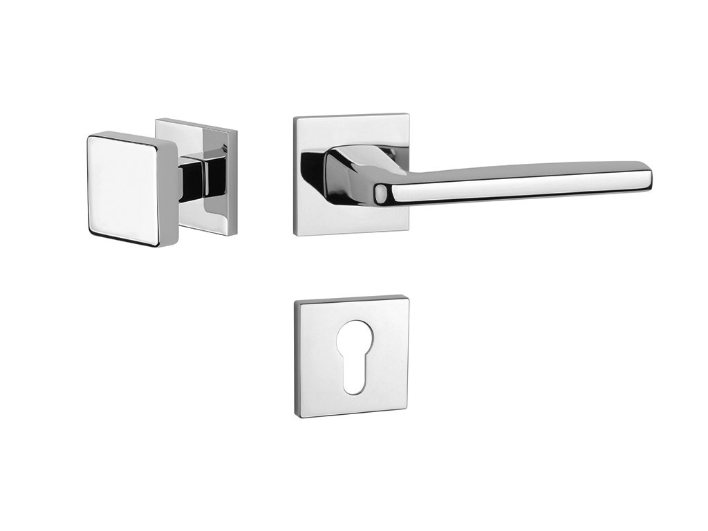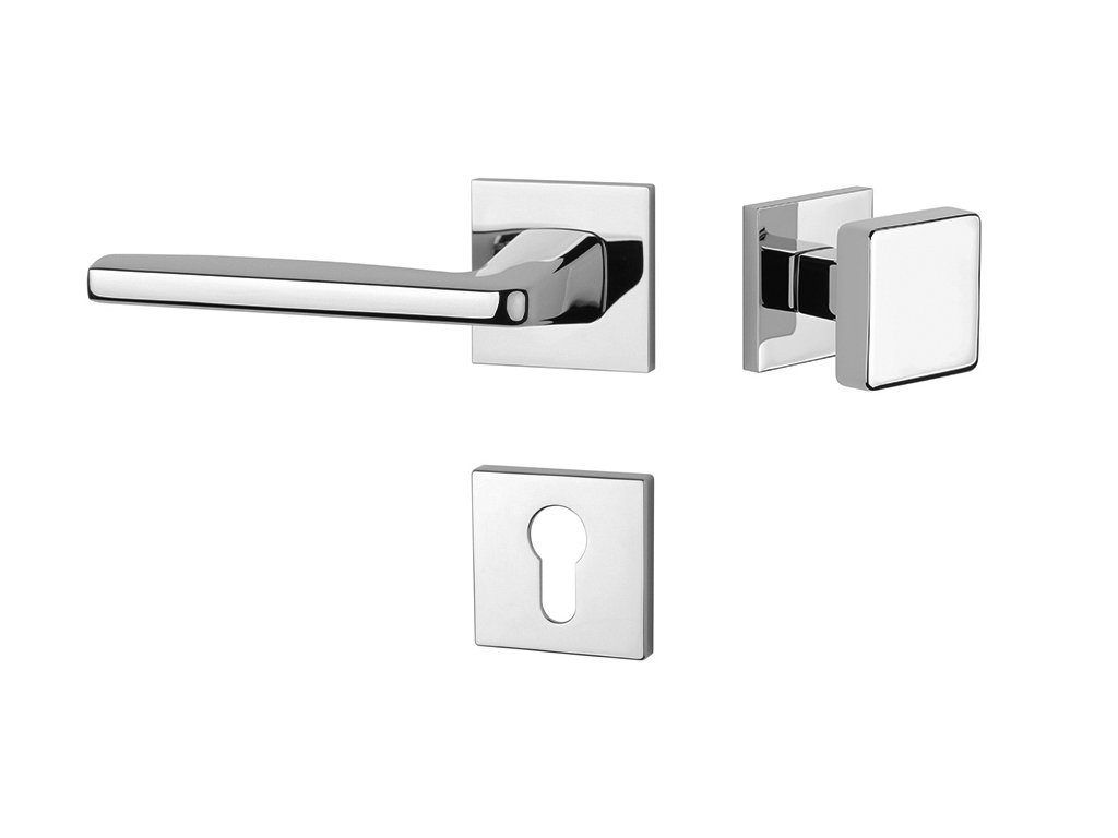 Rozetová kľučka na interiérové dvere s hranatou rozetou je vyrobená z materiálov vysokej kvality - zamak a je povrchovo upravená. Rozeta má rozmer 53x53 mm a hrúbku len 7 mm. Minimalistický dizajn rozety s vysokou stabilitou kľučky na dverách pôsobí jemne, a tým ponecháva priestor pre vyniknutie dizajnu samotnej kľučky.