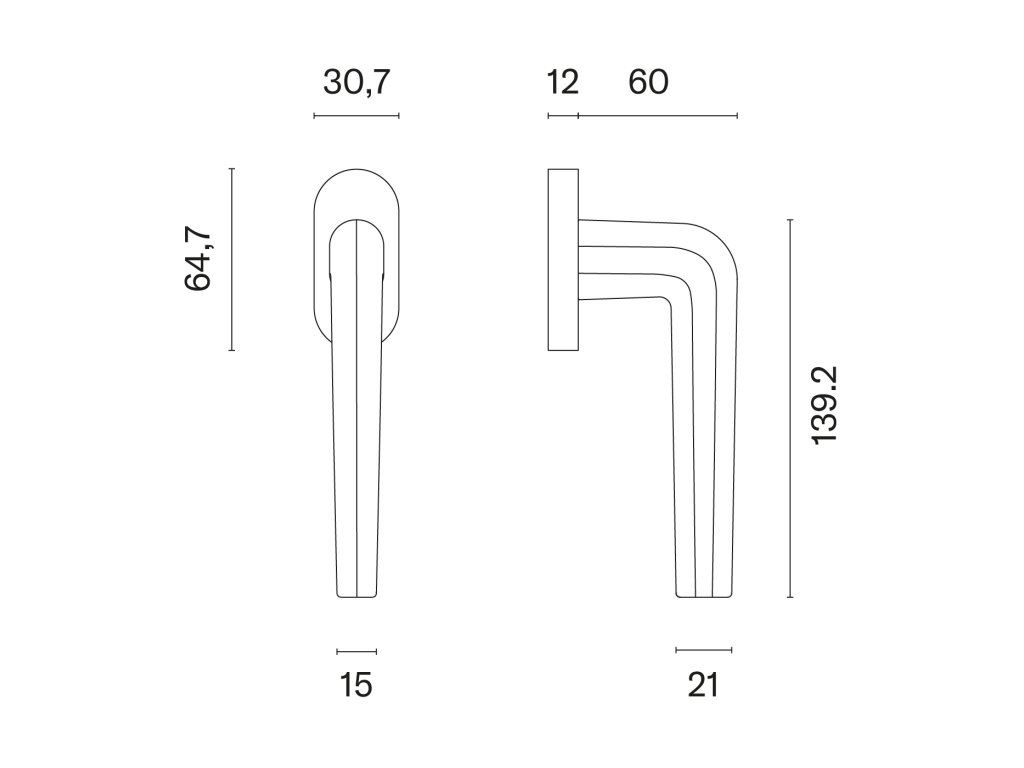 Kľučka na eurookno s oválnou rozetou je vyrobená z kvalitného materiálu zamak - zliatina zinku a je povrchovo upravená. Rozeta má rozmery 64,7 x 30,7 mm a hrúbku 12 mm.