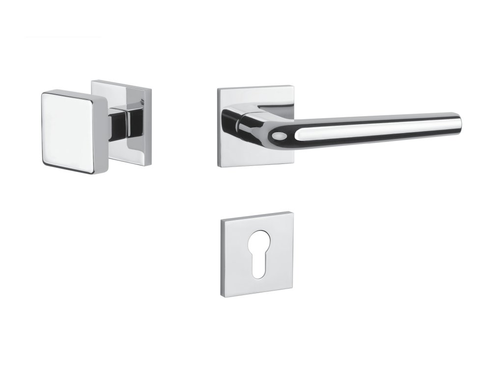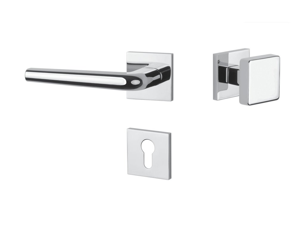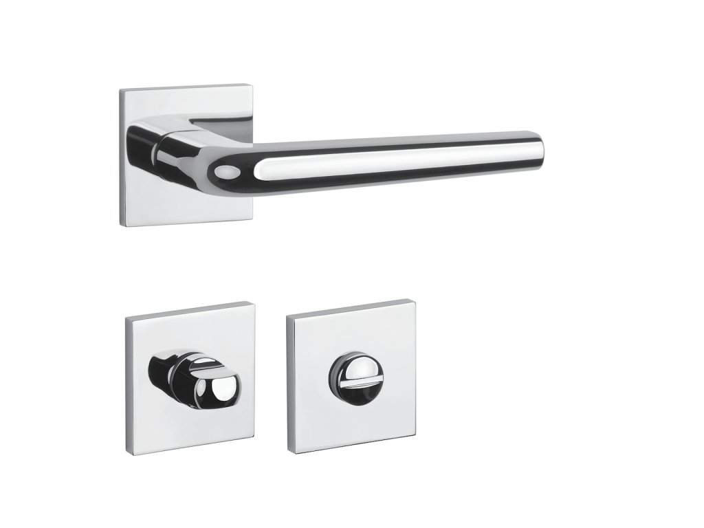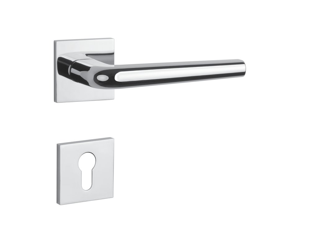 Rozetová kľučka na interiérové dvere s hranatou rozetou je vyrobená z materiálov vysokej kvality - zamak a je povrchovo upravená. Rozeta má rozmer 52x52 mm a hrúbku len 7 mm.
