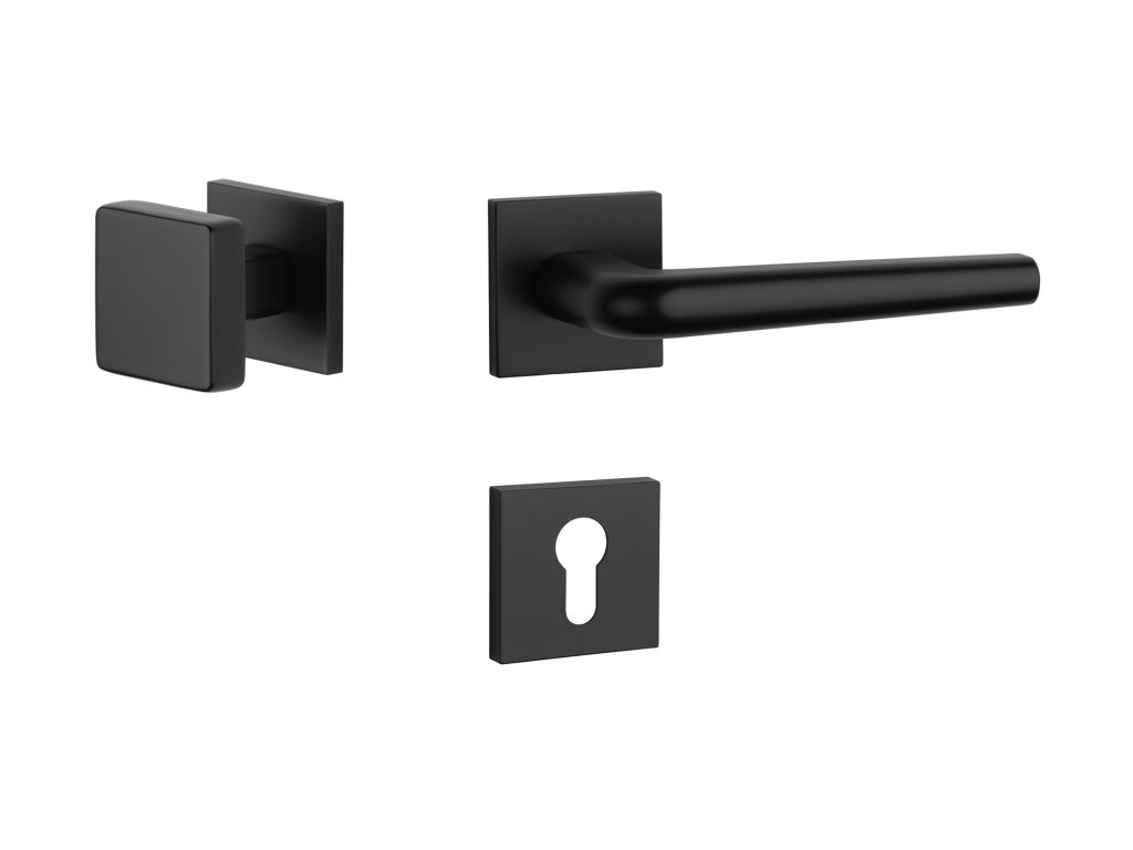 Rozetová kľučka na interiérové dvere s hranatou rozetou je vyrobená z materiálov vysokej kvality - zamak a je povrchovo upravená. Rozeta má rozmer 52x52 mm a hrúbku len 7 mm.