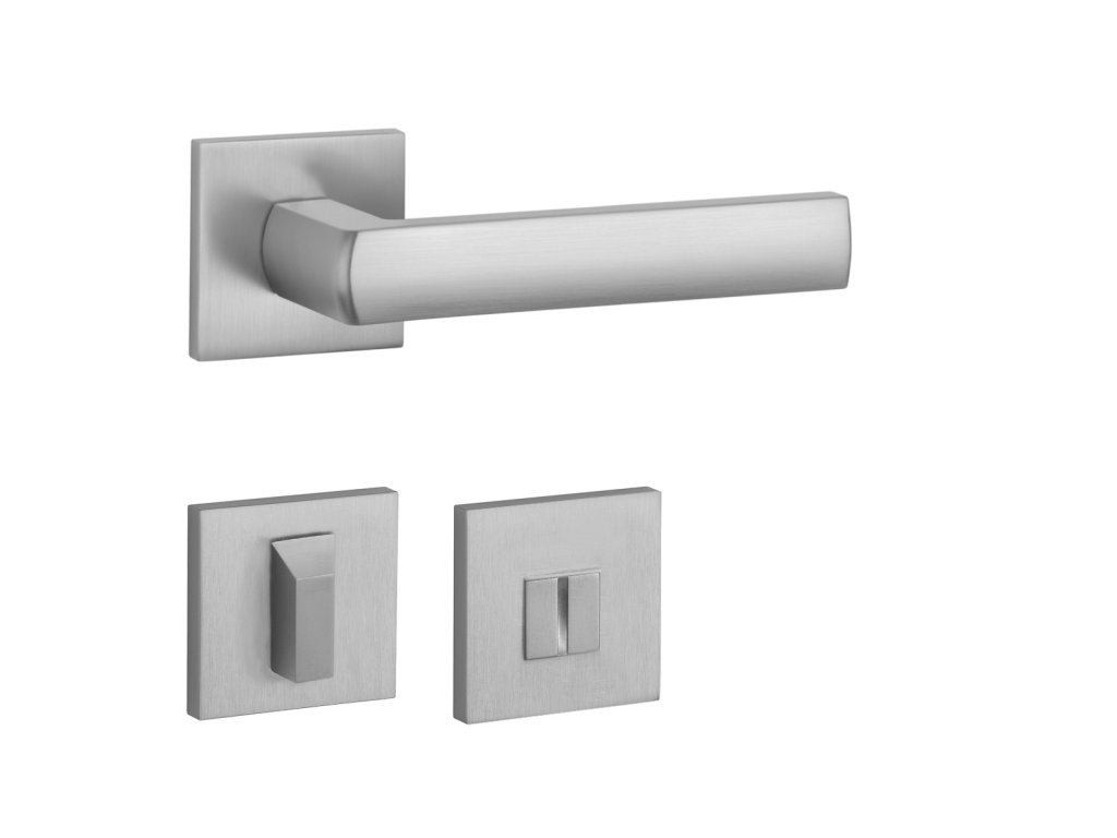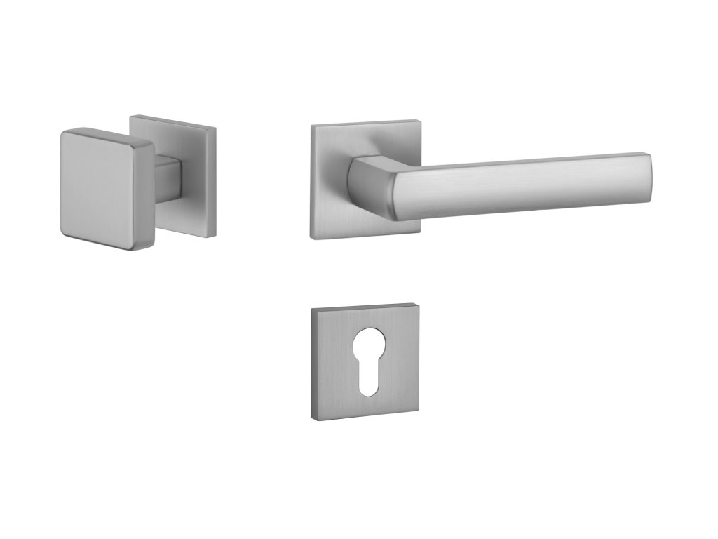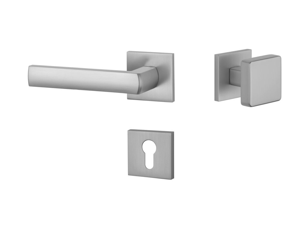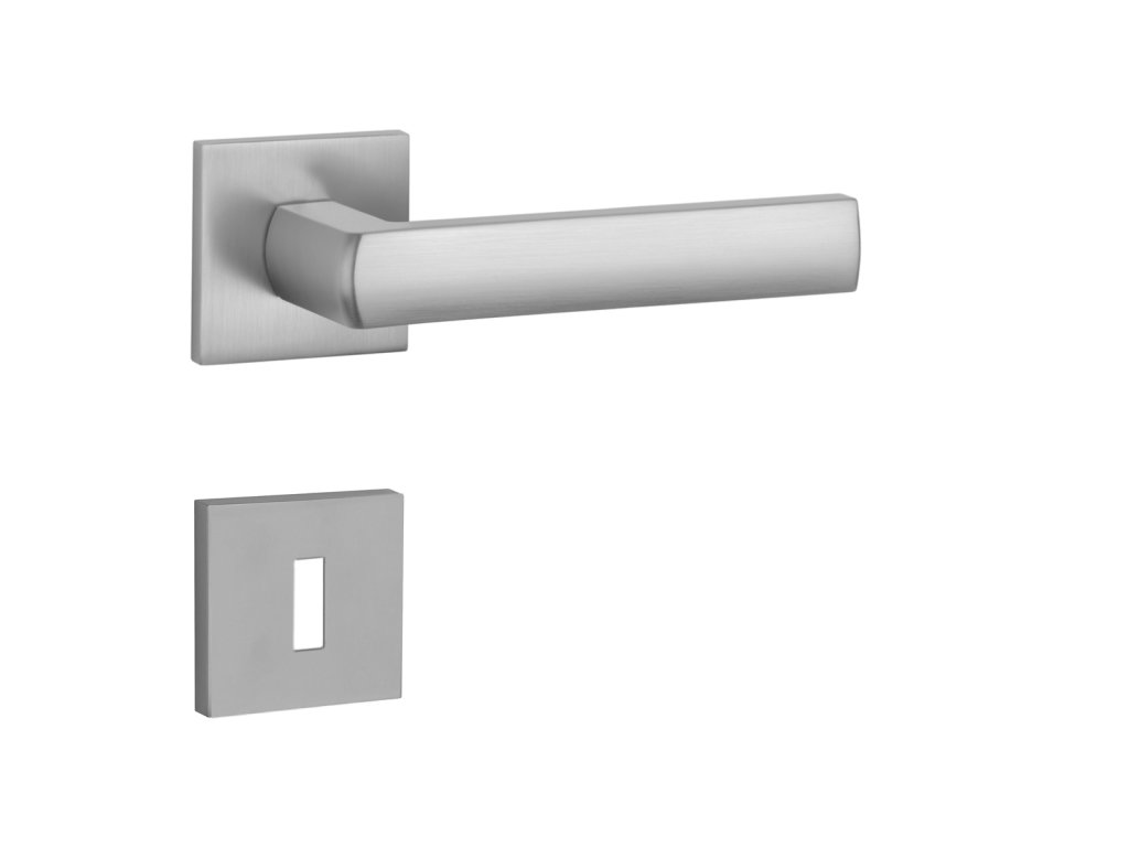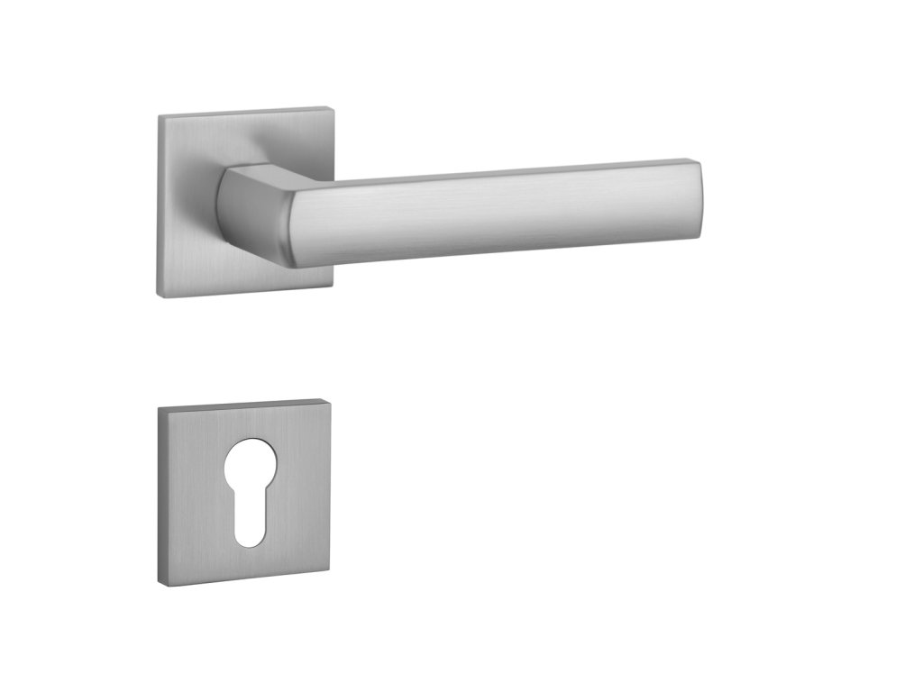 Rozetová kľučka na interiérové dvere s hranatou rozetou je vyrobená z materiálov vysokej kvality - zamak a je povrchovo upravená. Rozeta má rozmer 52x52 mm a hrúbku len 7 mm. Minimalistický dizajn rozety s vysokou stabilitou kľučky na dverách pôsobí jemne, a tým ponecháva priestor pre vyniknutie dizajnu samotnej kľučky.