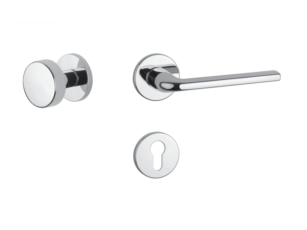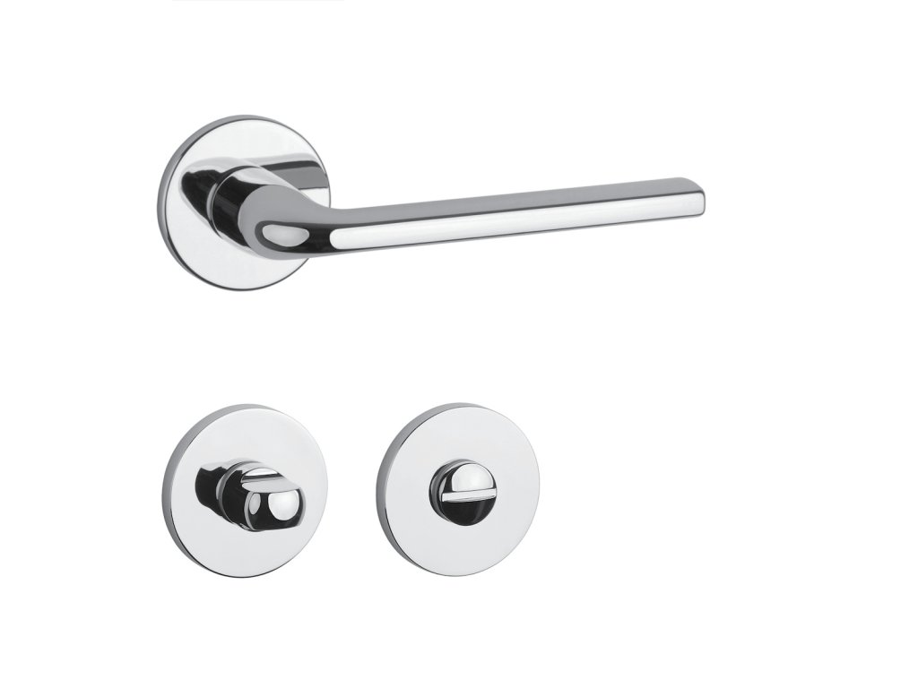 Rozetová kľučka na interiérové dvere s okrúhlou rozetou je vyrobená z materiálov vysokej kvality - zamak a je povrchovo upravená. Rozeta má priemer 52 mm a hrúbku len 7 mm. Minimalistický dizajn rozety s vysokou stabilitou kľučky na dverách pôsobí jemne, a tým ponecháva priestor pre vyniknutie dizajnu samotnej kľučky.