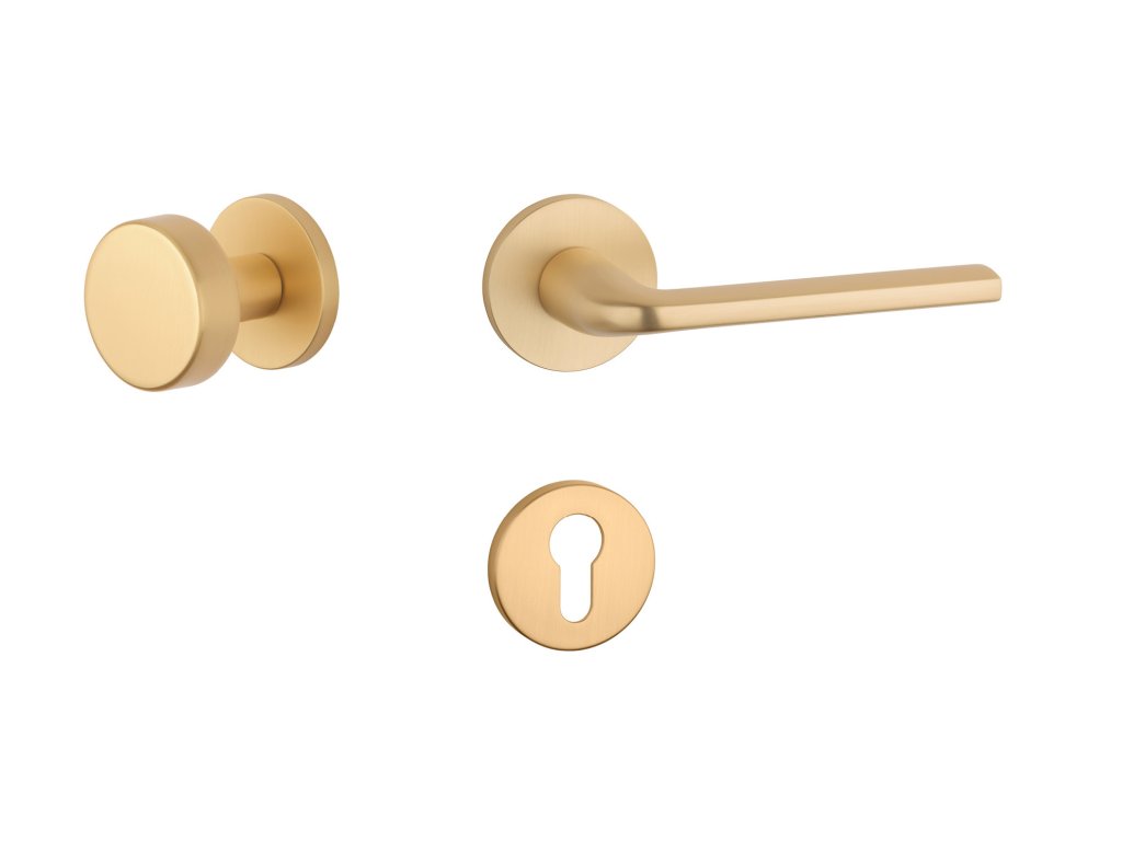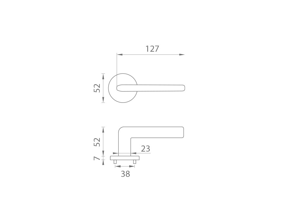 Rozetová kľučka na interiérové dvere s okrúhlou rozetou je vyrobená z materiálov vysokej kvality - zamak a je povrchovo upravená. Rozeta má priemer 52 mm a hrúbku len 7 mm. Minimalistický dizajn rozety s vysokou stabilitou kľučky na dverách pôsobí jemne, a tým ponecháva priestor pre vyniknutie dizajnu samotnej kľučky.