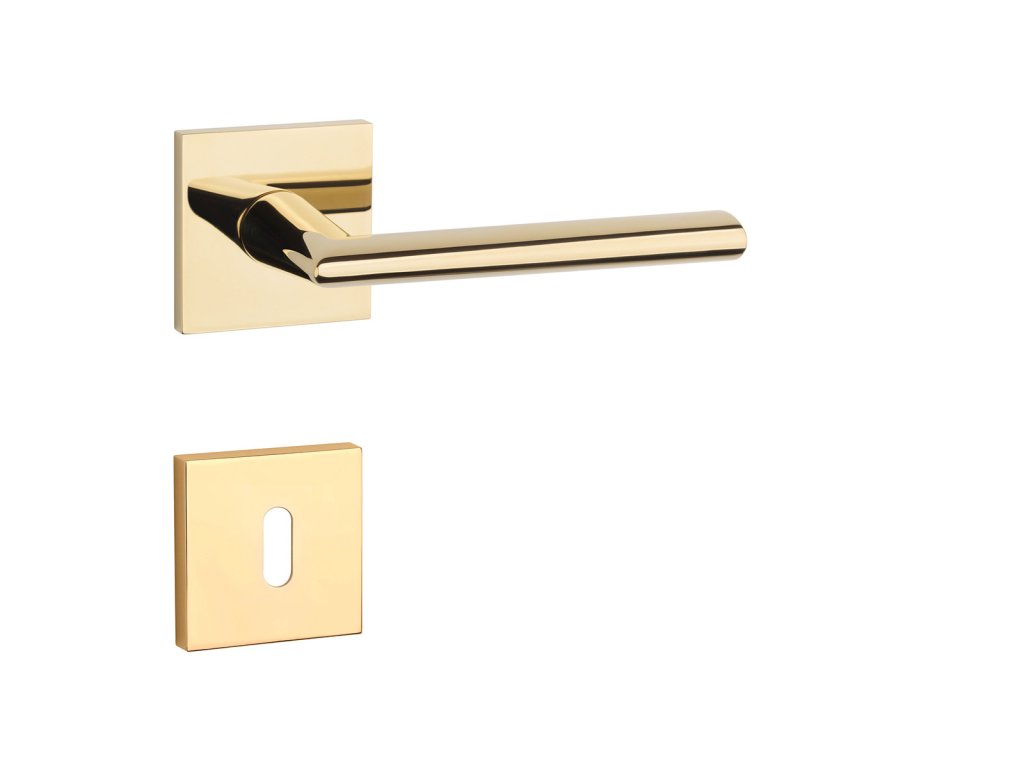 Rozetová kľučka na interiérové dvere s hranatou rozetou je vyrobená z materiálov vysokej kvality - zamak a je povrchovo upravená. Rozeta má rozmer 53x53 mm a hrúbku len 7 mm. Minimalistický dizajn rozety s vysokou stabilitou kľučky na dverách pôsobí jemne, a tým ponecháva priestor pre vyniknutie dizajnu samotnej kľučky.