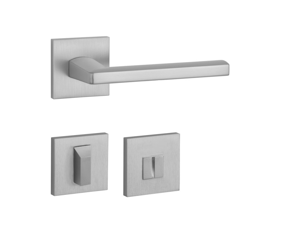 Rozetová kľučka na interiérové dvere s hranatou rozetou je vyrobená z materiálov vysokej kvality - zamak a je povrchovo upravená. Rozeta má rozmer 52x52 mm a hrúbku len 7 mm. Minimalistický dizajn rozety s vysokou stabilitou kľučky na dverách pôsobí jemne, a tým ponecháva priestor pre vyniknutie dizajnu samotnej kľučky.