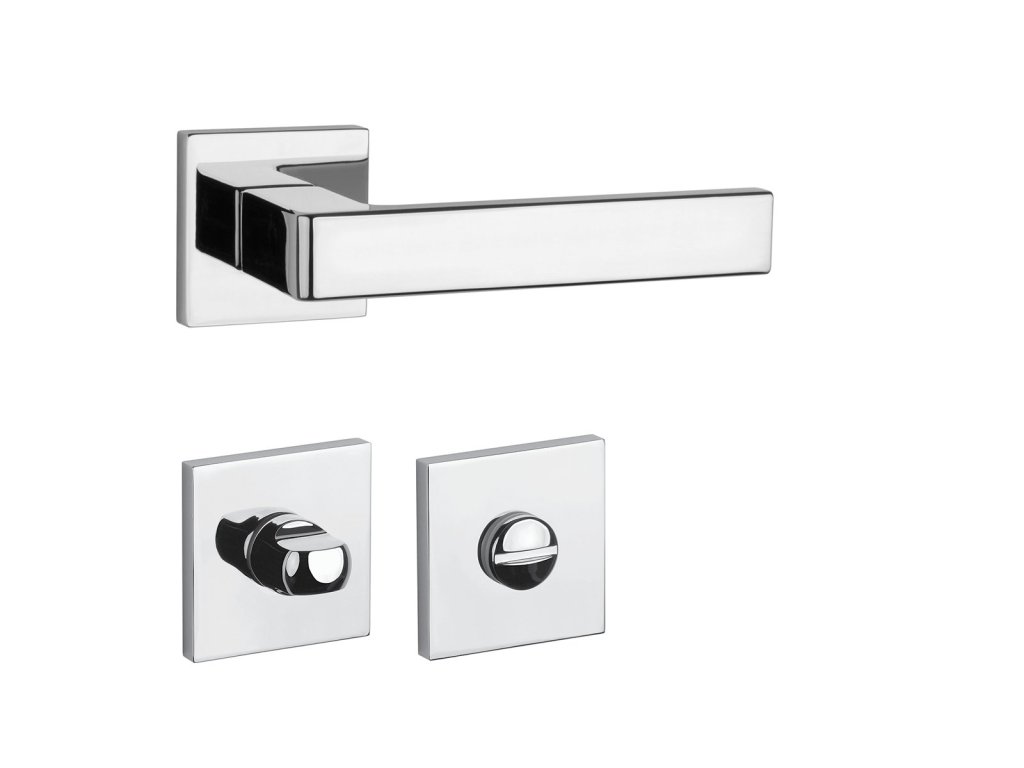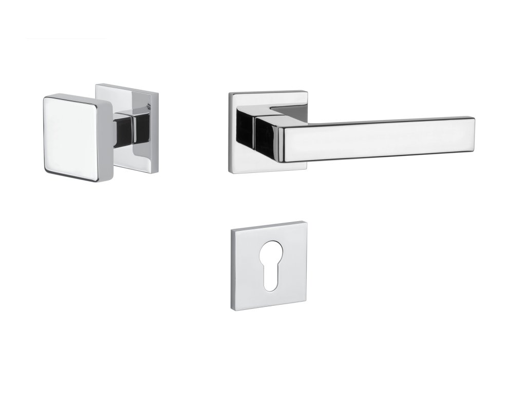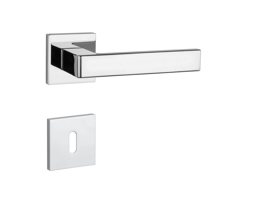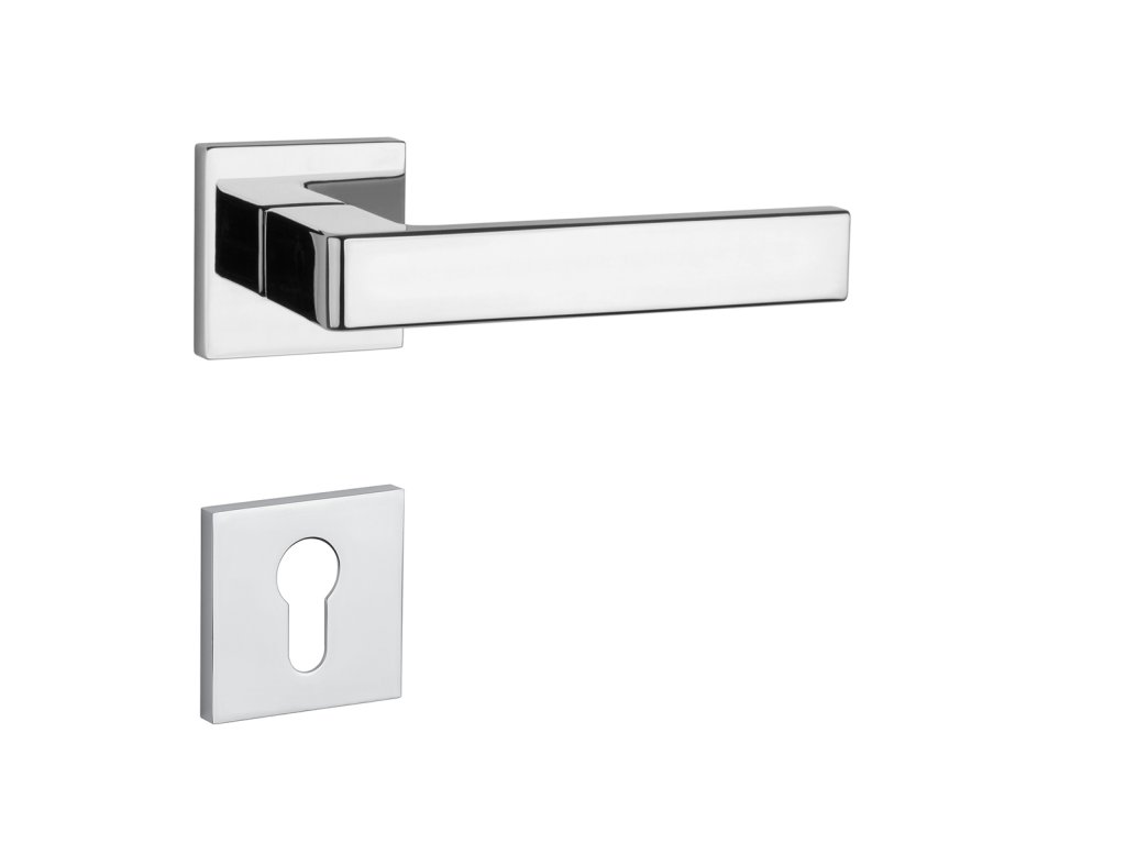 Rozetová kľučka na interiérové dvere s hranatou rozetou je vyrobená z materiálov vysokej kvality - zamak a je povrchovo upravená. Rozeta má rozmer 52x52 mm a hrúbku len 7 mm. Minimalistický dizajn rozety s vysokou stabilitou kľučky na dverách pôsobí jemne, a tým ponecháva priestor pre vyniknutie dizajnu samotnej kľučky.