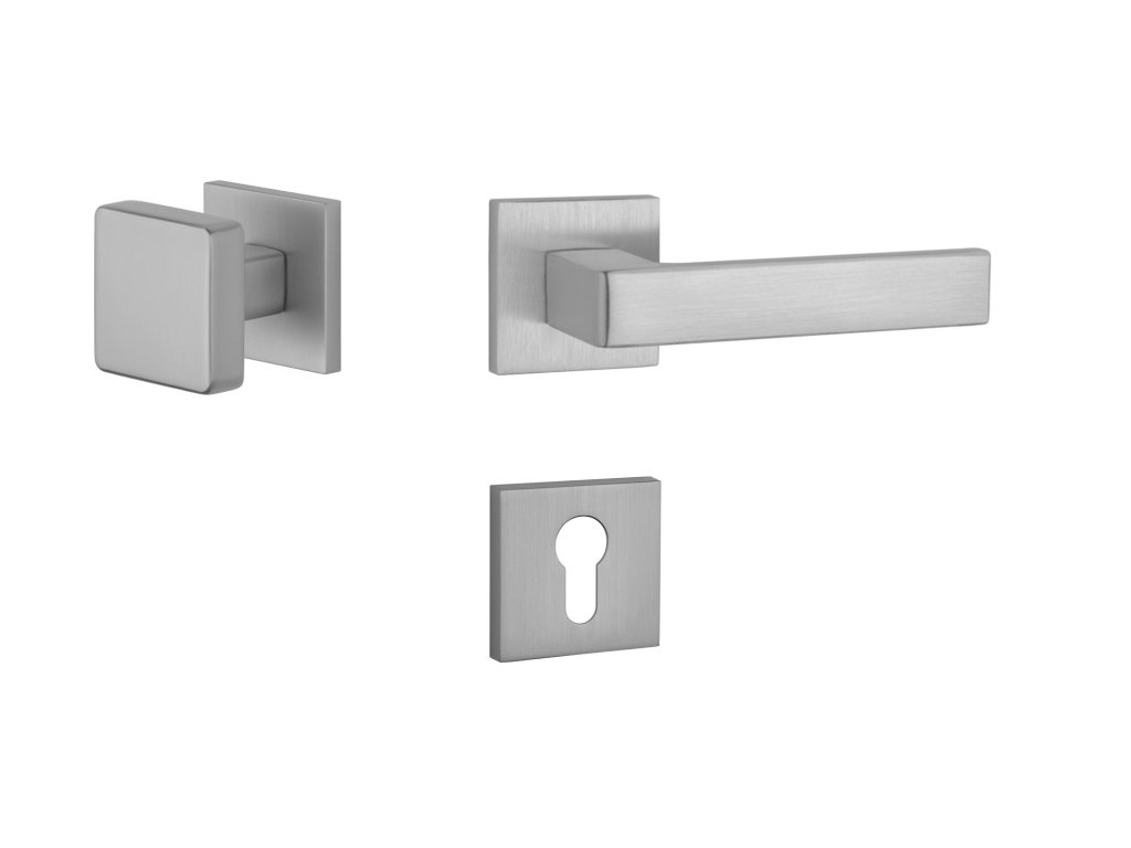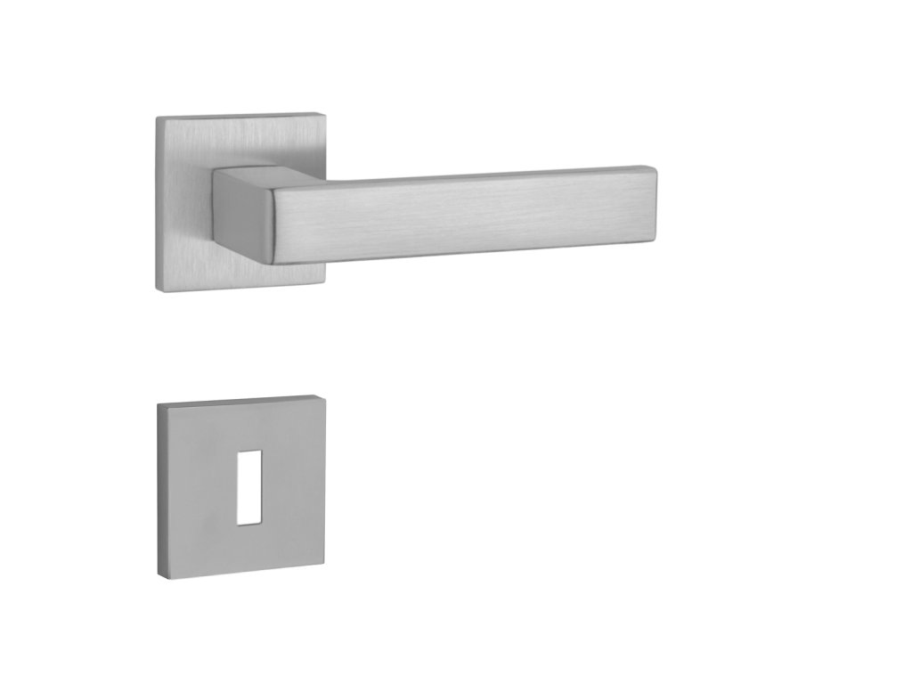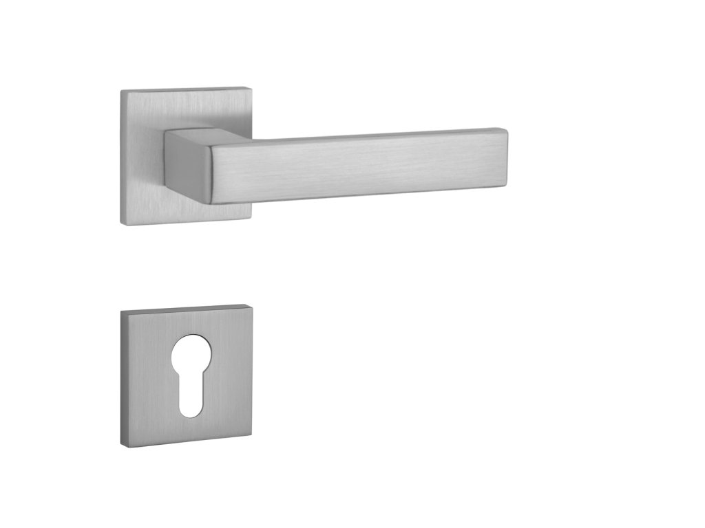 Rozetová kľučka na interiérové dvere s hranatou rozetou je vyrobená z materiálov vysokej kvality - zamak a je povrchovo upravená. Rozeta má rozmer 52x52 mm a hrúbku len 7 mm. Minimalistický dizajn rozety s vysokou stabilitou kľučky na dverách pôsobí jemne, a tým ponecháva priestor pre vyniknutie dizajnu samotnej kľučky.
