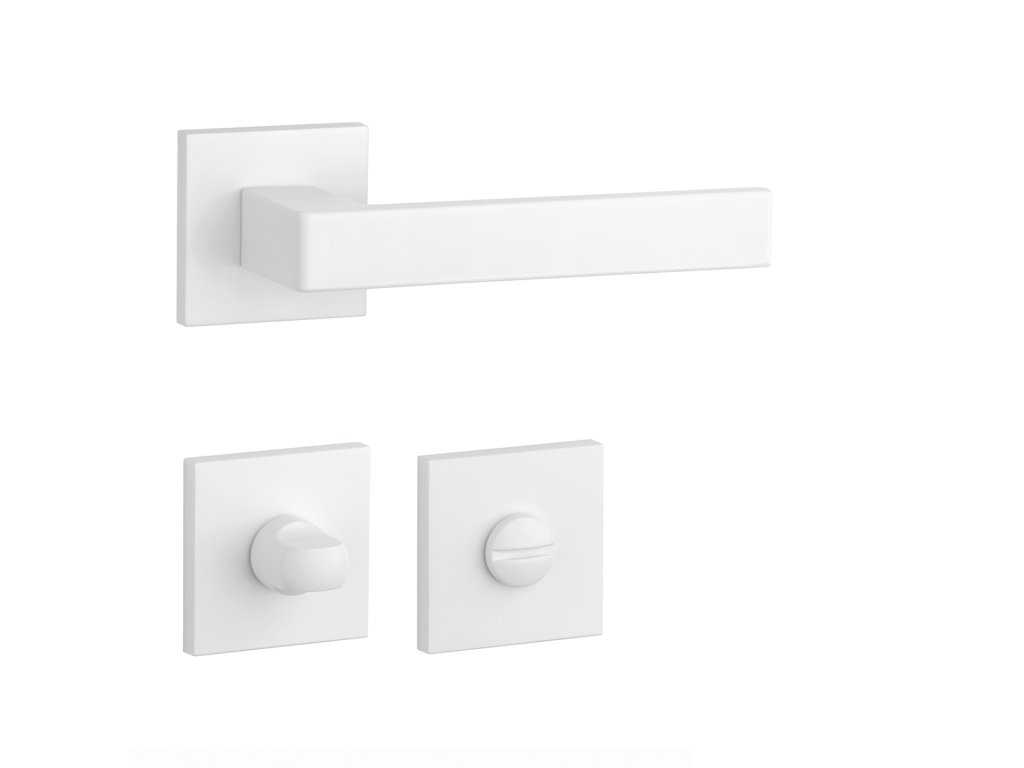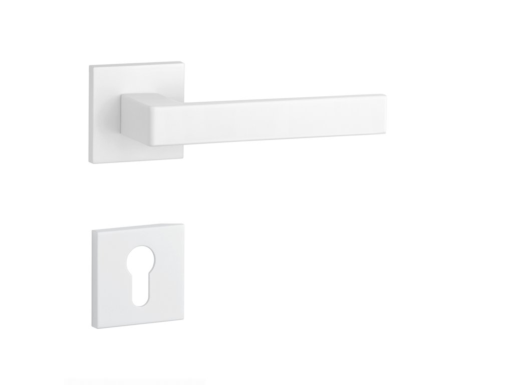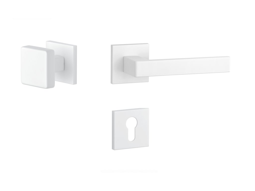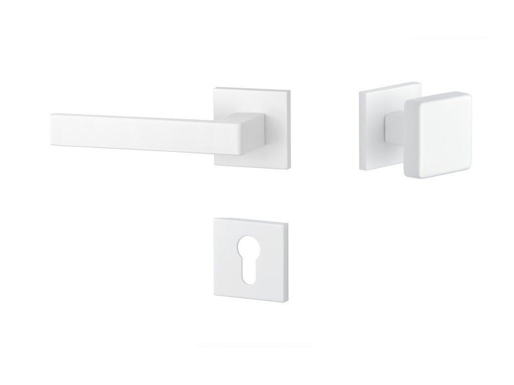 Rozetová kľučka na interiérové dvere s hranatou rozetou je vyrobená z materiálov vysokej kvality - zamak a je povrchovo upravená. Rozeta má rozmer 52x52 mm a hrúbku len 7 mm. Minimalistický dizajn rozety s vysokou stabilitou kľučky na dverách pôsobí jemne, a tým ponecháva priestor pre vyniknutie dizajnu samotnej kľučky.