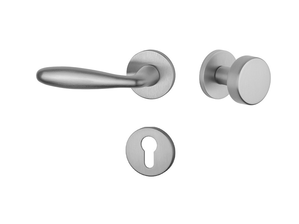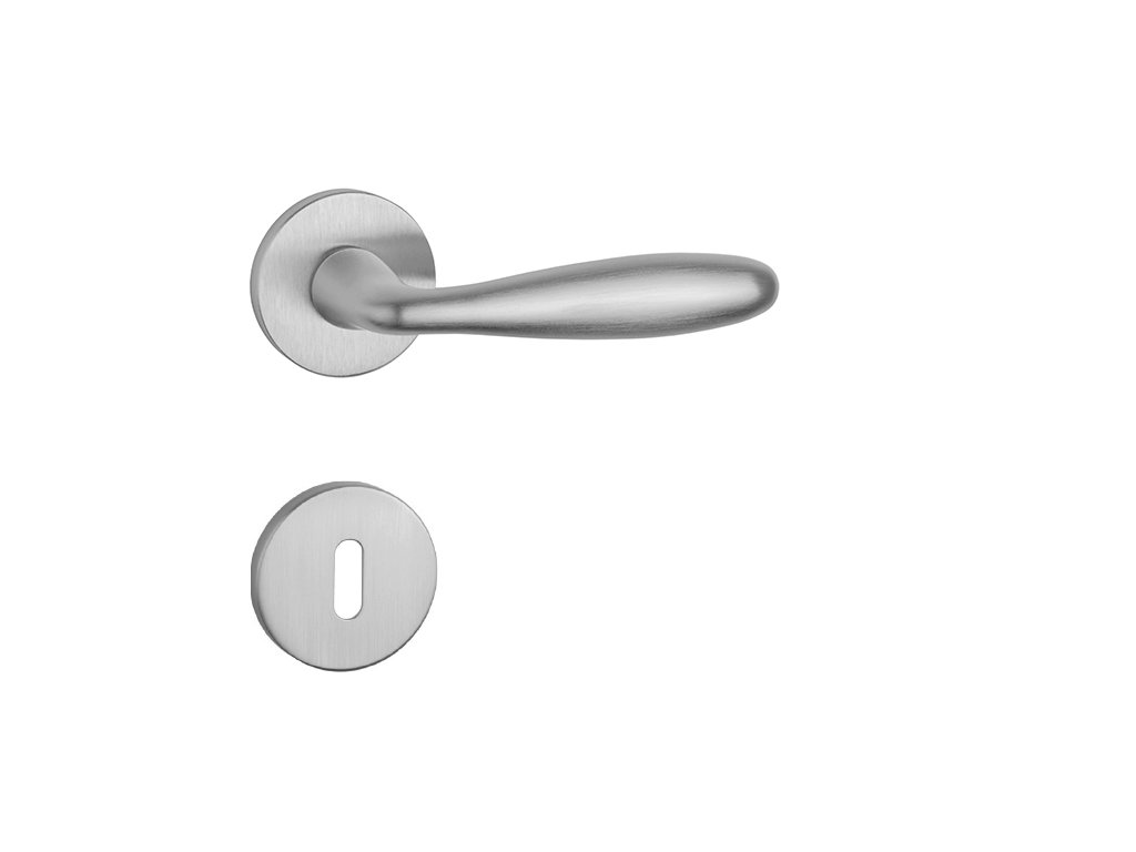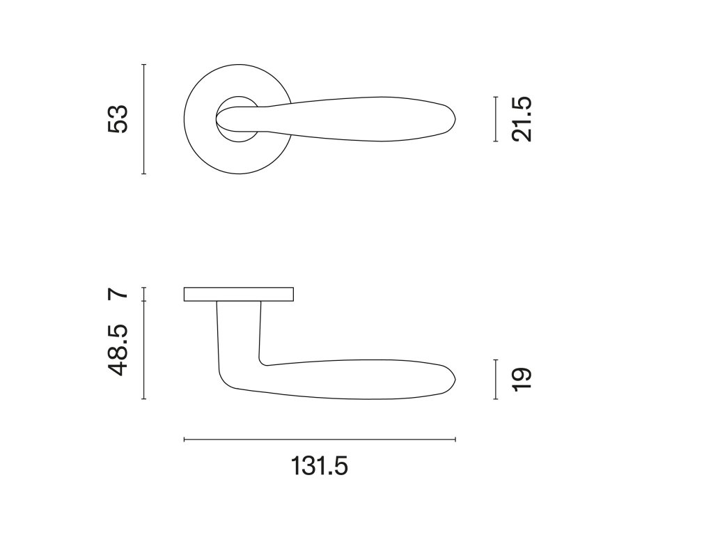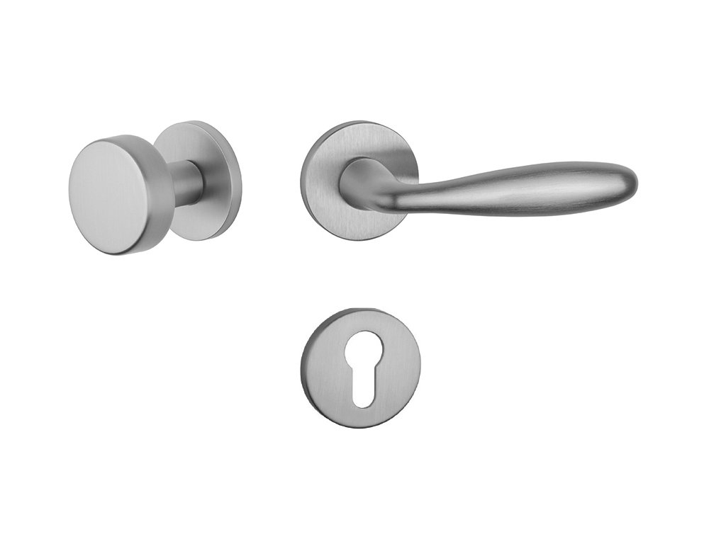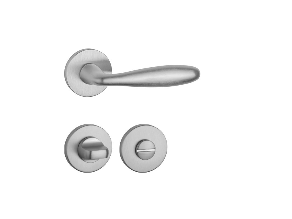 Rozetová kľučka na interiérové dvere s okrúhlou rozetou je vyrobená z materiálov vysokej kvality - zamak a je povrchovo upravená. Rozeta má priemer 53 mm a hrúbku len 7 mm. Minimalistický dizajn rozety s vysokou stabilitou kľučky na dverách pôsobí jemne, a tým ponecháva priestor pre vyniknutie dizajnu samotnej kľučky.
