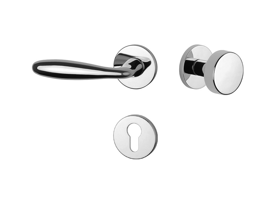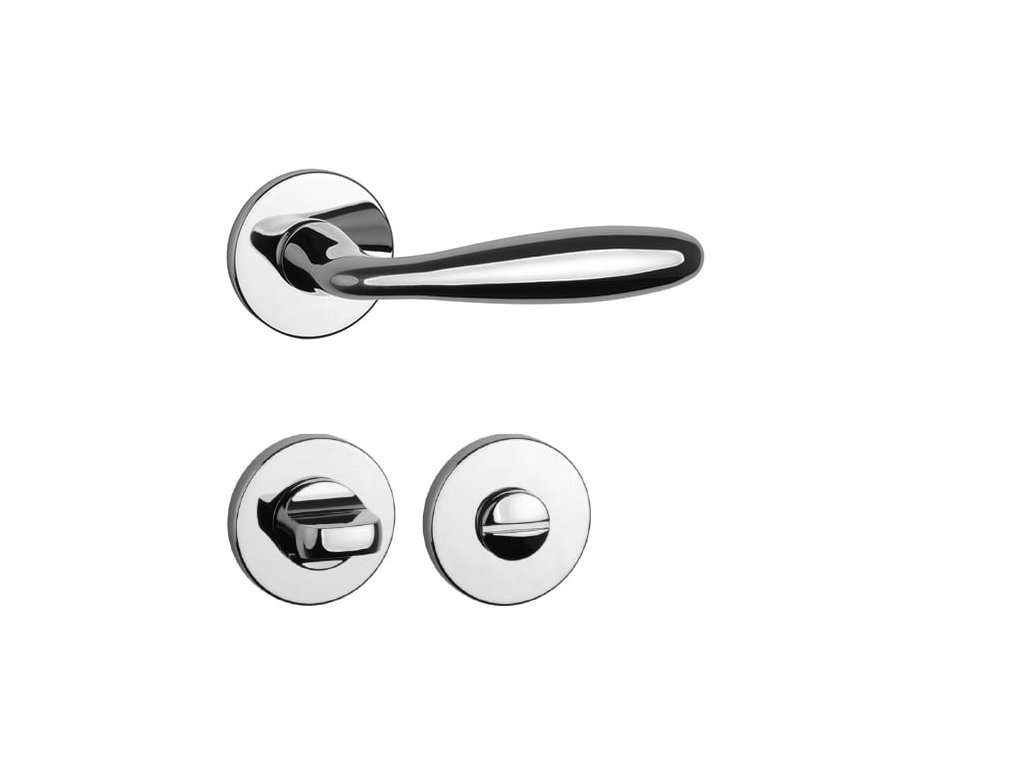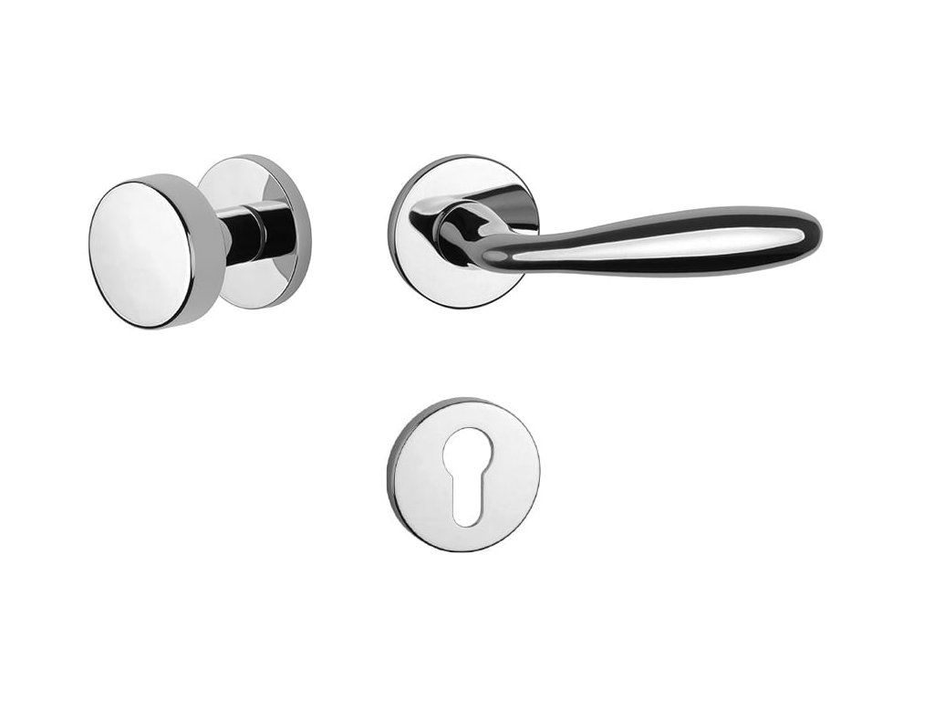 Rozetová kľučka na interiérové dvere s okrúhlou rozetou je vyrobená z materiálov vysokej kvality - zamak a je povrchovo upravená. Rozeta má priemer 53 mm a hrúbku len 7 mm. Minimalistický dizajn rozety s vysokou stabilitou kľučky na dverách pôsobí jemne, a tým ponecháva priestor pre vyniknutie dizajnu samotnej kľučky.