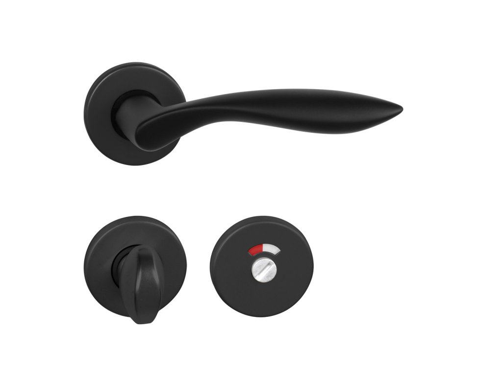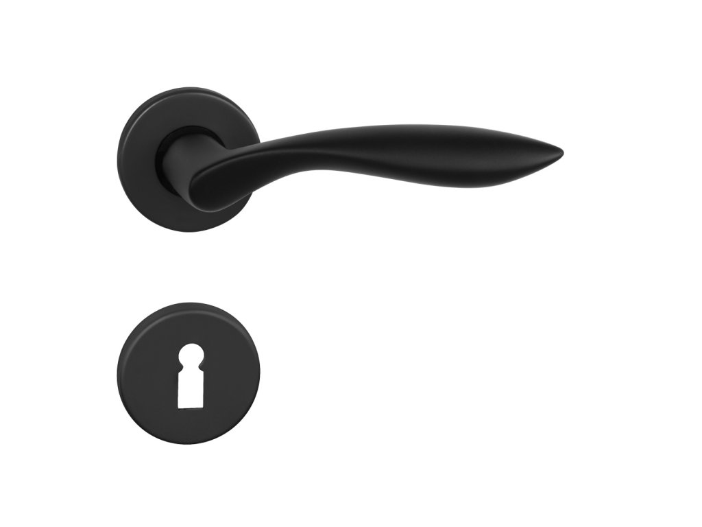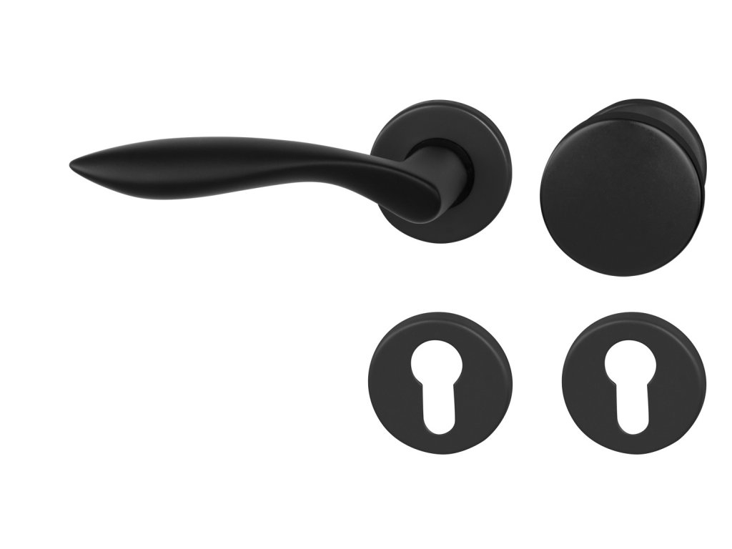 Rozetová kľučka na interiérové dvere s okrúhlou rozetou je vyrobená z hliníka a je povrchovo upravená. Rozeta má priemer 50 mm a hrúbku 7 mm. KKľučka neobsahuje vratný mechanizmus kľučky – pružinu.