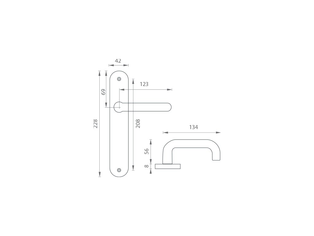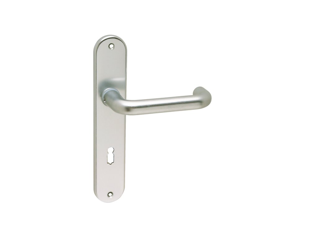 Štítová kľučka na interiérové dvere s oválnym štítom je vyrobená z hliníka a je povrchovo upravená. Kľučka neobsahuje vratný mechanizmus.