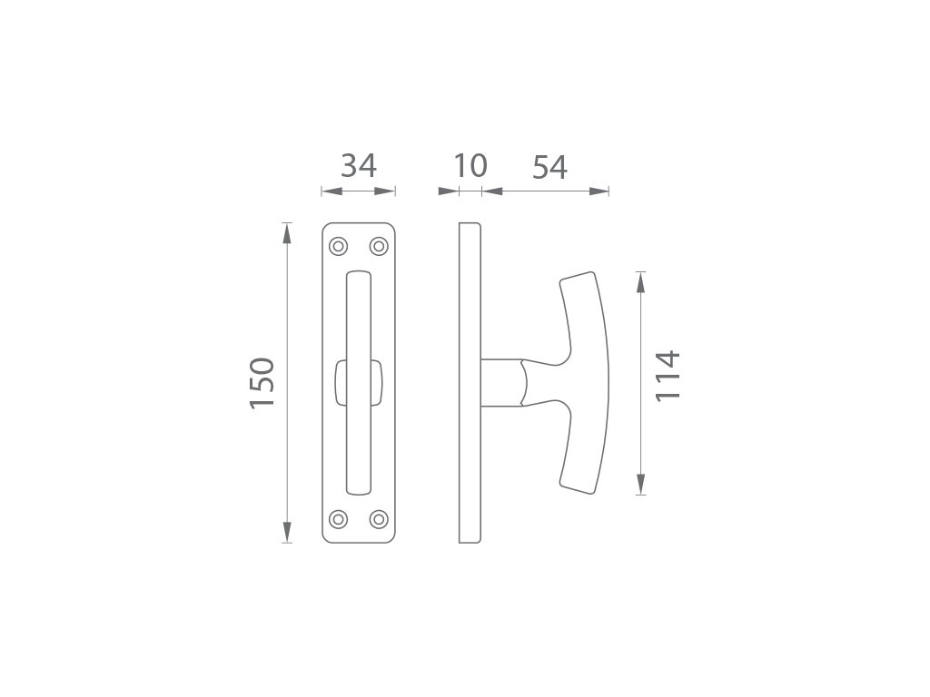 Oliva na drevené okno s hranatým štítom je vyrobená z hliníka a je povrchovo upravená. Rozeta má rozmery 34 mm x 150 mm a hrúbku 10 mm.