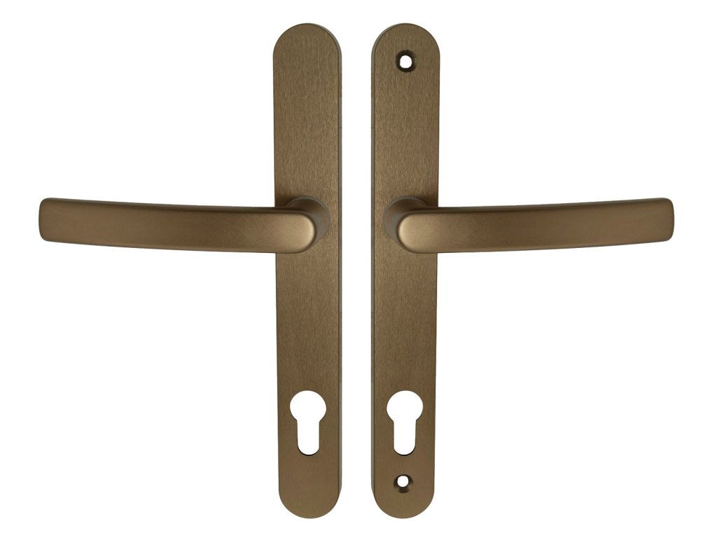 Štítová kľučka na vchodové dvere so spevneným oválnym úzkym štítom je vyrobená z hliníka a je povrchovo upravená.