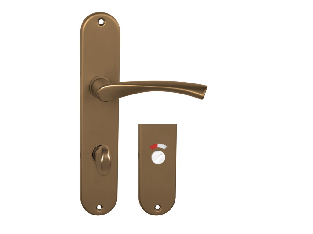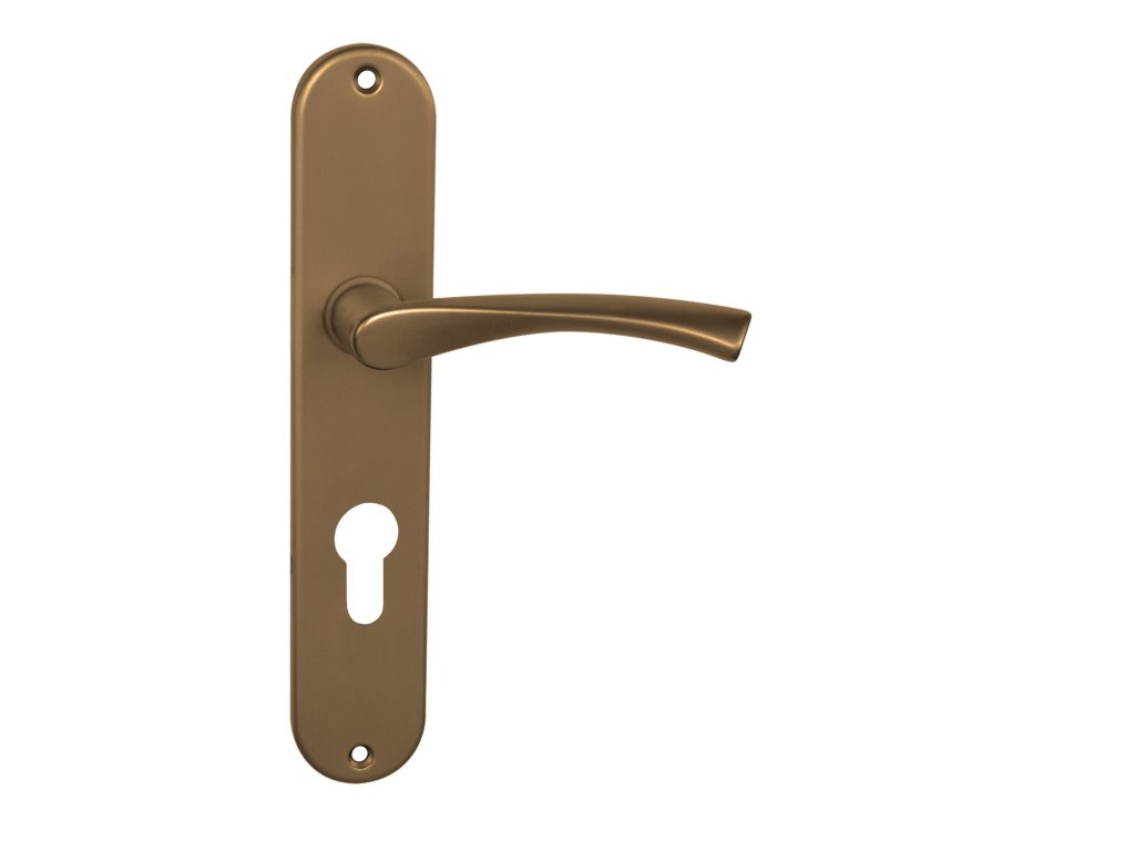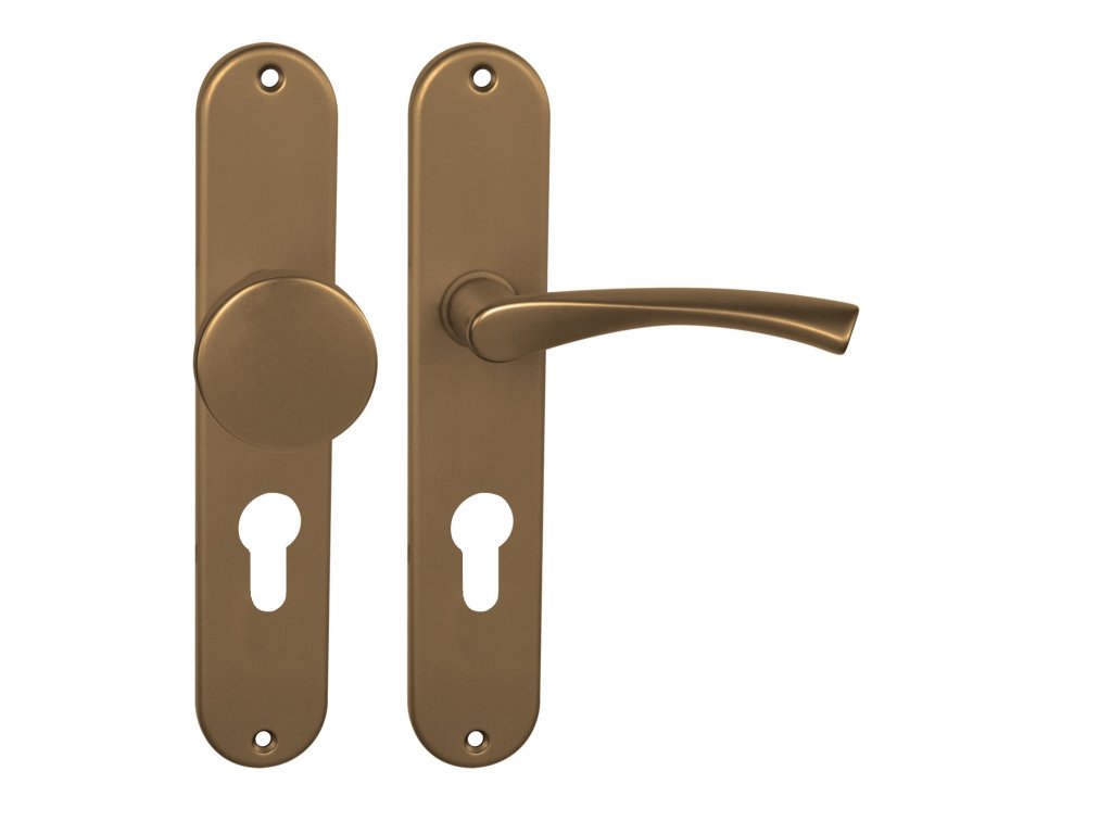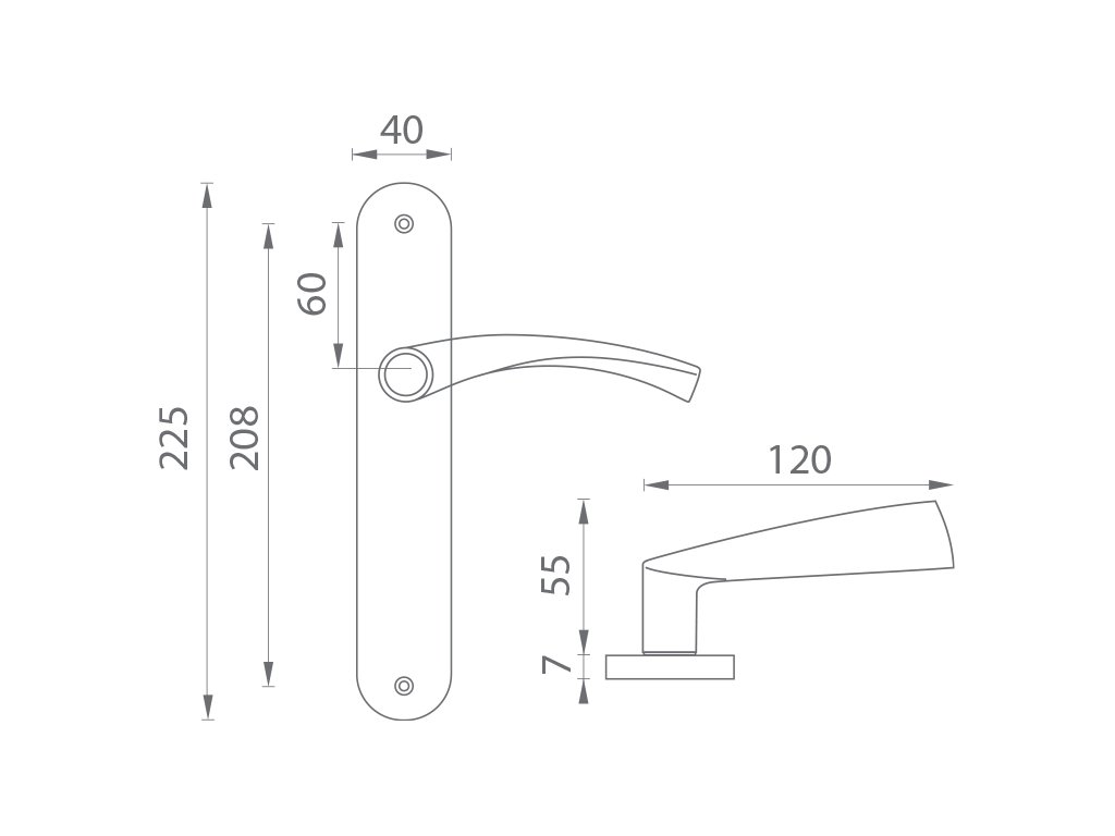Štítová kľučka na interiérové dvere s oválnym štítom je vyrobená z hliníka a je povrchovo upravená. Oválny štít má rozmery 40 mm x 225 mm a kľučka neobsahuje vratný mechanizmus.