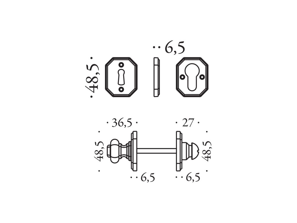 Rozetová kľučka na interiérové dvere Busiri od Colombo Design z kolekcie Antologhia je vyrobená z mosadze a je povrchovo upravená. Obdĺžniková rozeta so skosenými hranami má rozmery 39,5 x 48,5 mm a hrúbku 6,5 mm.