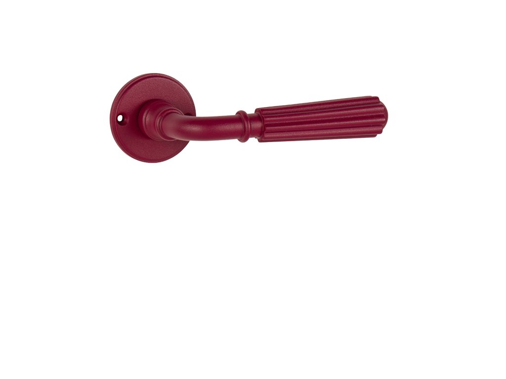 Vrúbkovaný povrch jej dodáva zaujímavú textúru a hodí sa do klasických, elegantných interiérov, ale aj do rustikálnych, kde pridá priestorom sofistikovaný nádych. Červenofialová farba kľučky vytvára na dverách zaujímavý kontrast. Priznané skrutky podčiarkujú odkaz na tradíciu a históriu, ktorými je kolekcia Antologhia známa.