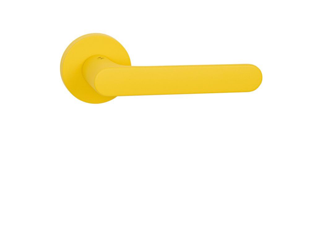 Farebná rozetová kľučka na interiérové dvere MOOD ONE s okrúhlou rozetou je vyrobená z materiálov vysokej kvality a je povrchovo upravená. Rozeta má priemer 50 mm a hrúbku 10 mm. Minimalistický dizajn rozety dáva priestor pre vyniknutie výraznej farby samotnej kľučky.