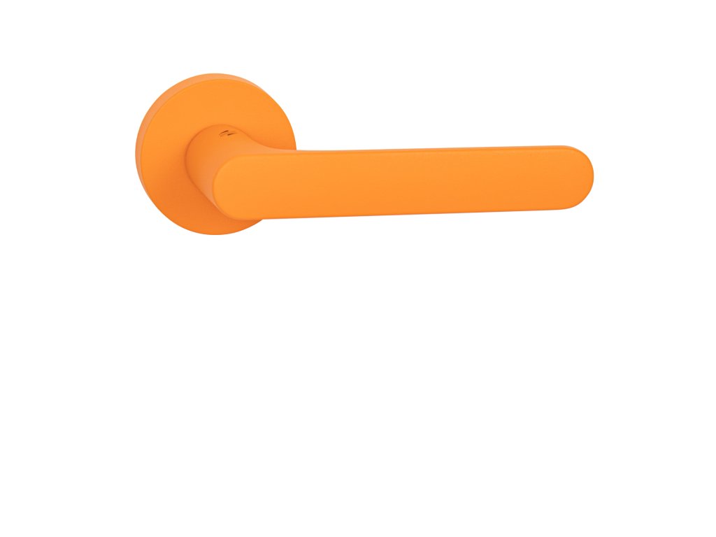 Farebná rozetová kľučka na interiérové dvere MOOD ONE s okrúhlou rozetou je vyrobená z materiálov vysokej kvality - Cromall® (patentovaná zliatina kovov) a je povrchovo upravená. Rozeta má priemer 50 mm a hrúbku 10 mm. Minimalistický dizajn rozety dáva priestor pre vyniknutie výraznej farby samotnej kľučky.