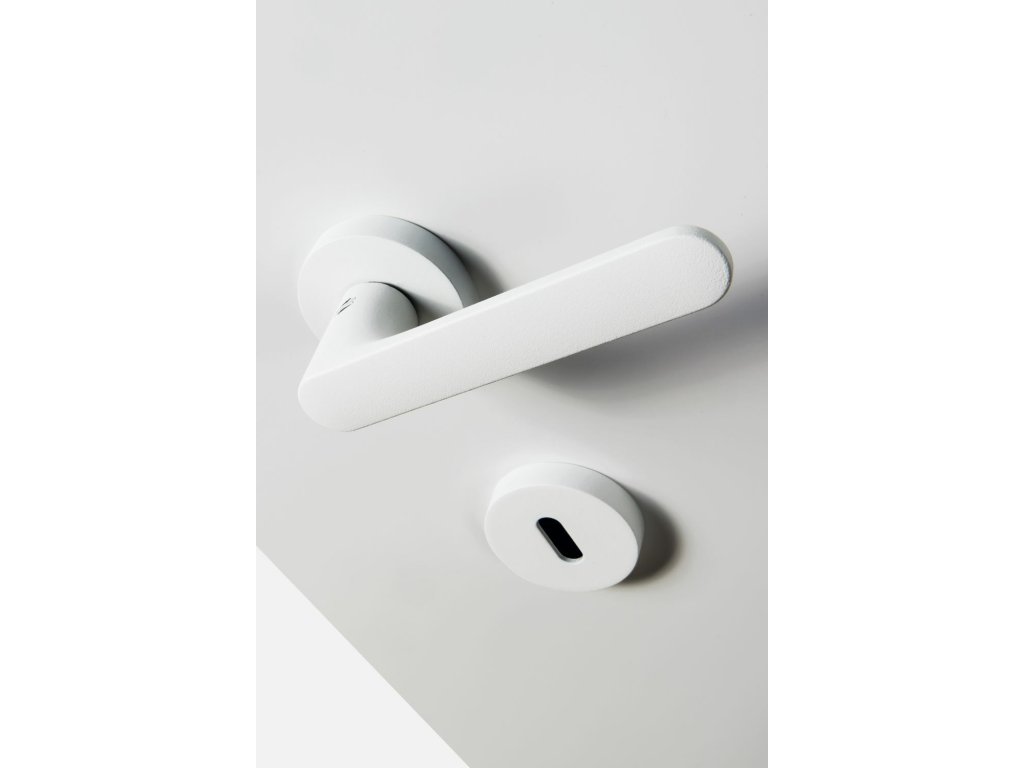 Farebná rozetová kľučka na interiérové dvere MOOD ONE s okrúhlou rozetou je vyrobená z materiálov vysokej kvality - Cromall® (patentovaná zliatina kovov) a je povrchovo upravená. Rozeta má priemer 50 mm a hrúbku 10 mm. Minimalistický dizajn rozety dáva priestor pre vyniknutie výraznej farby samotnej kľučky.