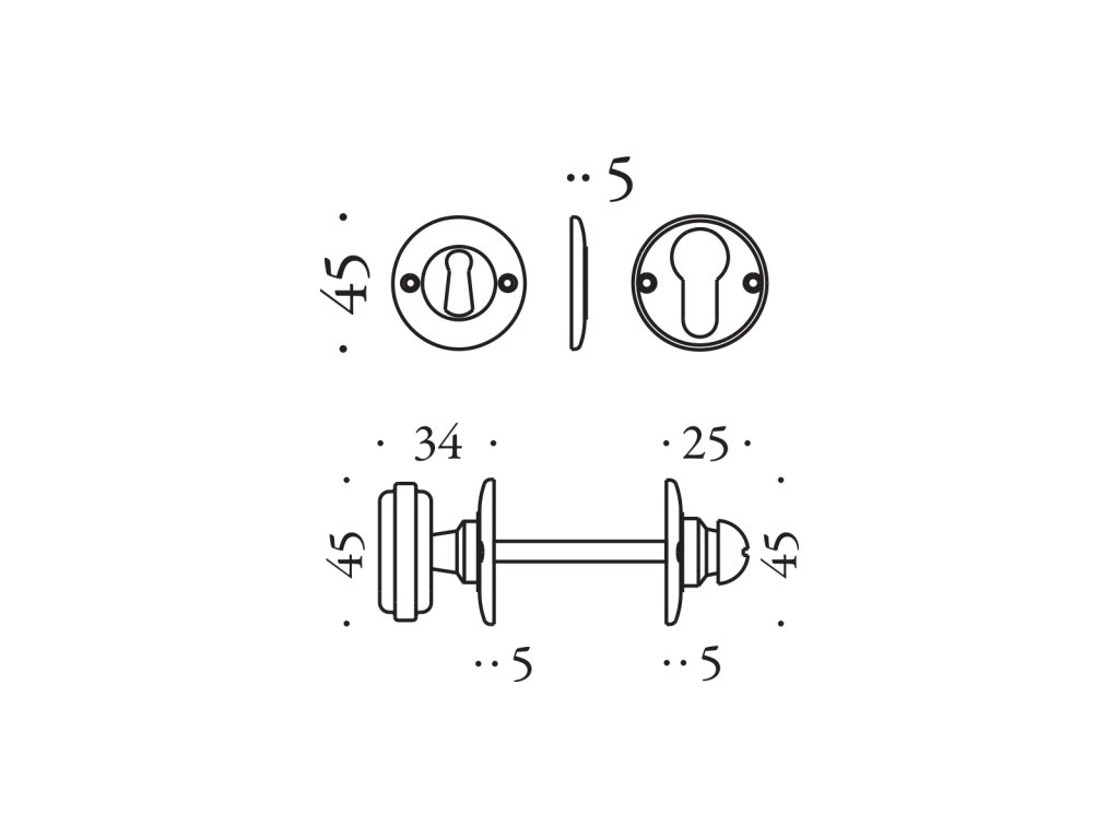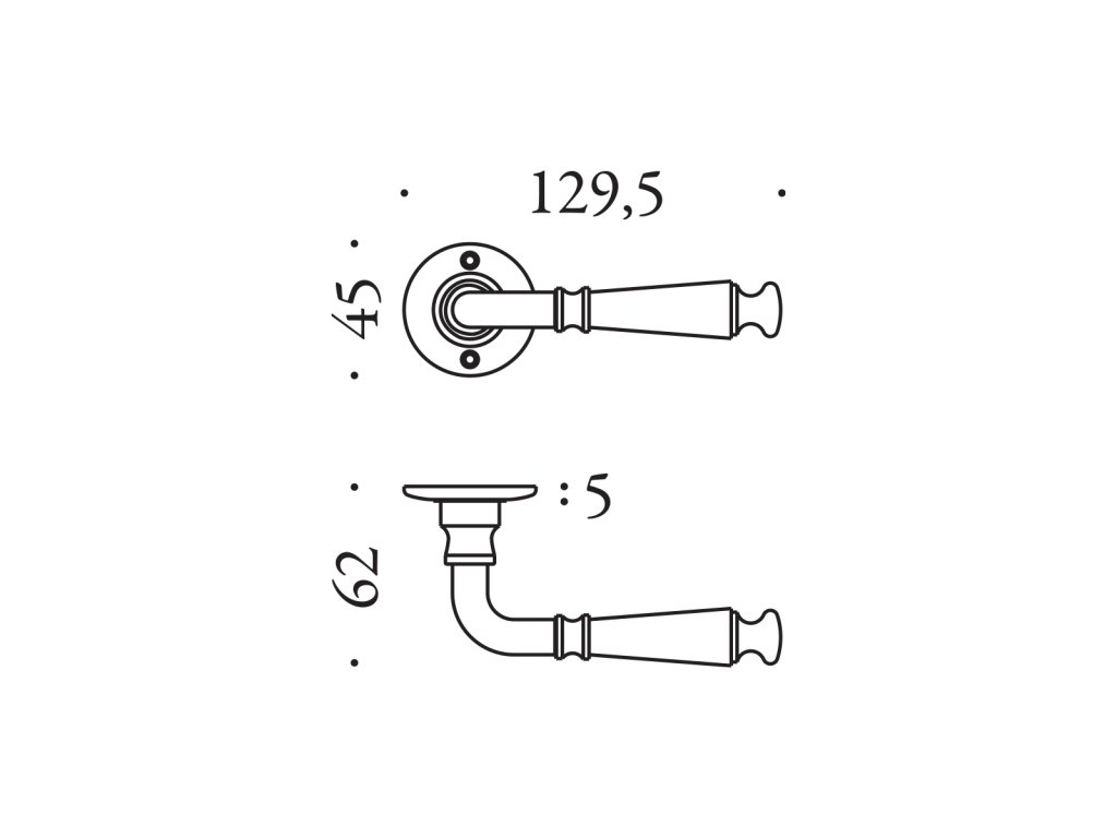 Rozetová kľučka na interiérové dvere Ottocento od Colombo Design z kolekcie Antologhia je vyrobená z mosadze a je povrchovo upravená. Okrúhla rozeta má priemer 45 mm a hrúbku 5 mm.