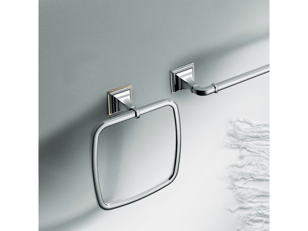 Držiak na uterák s dizajnovou podložkou, ktorá vytvára tenký zlatý lem a elegantne podčiarkne jedinečnosť vašej kúpeľne.