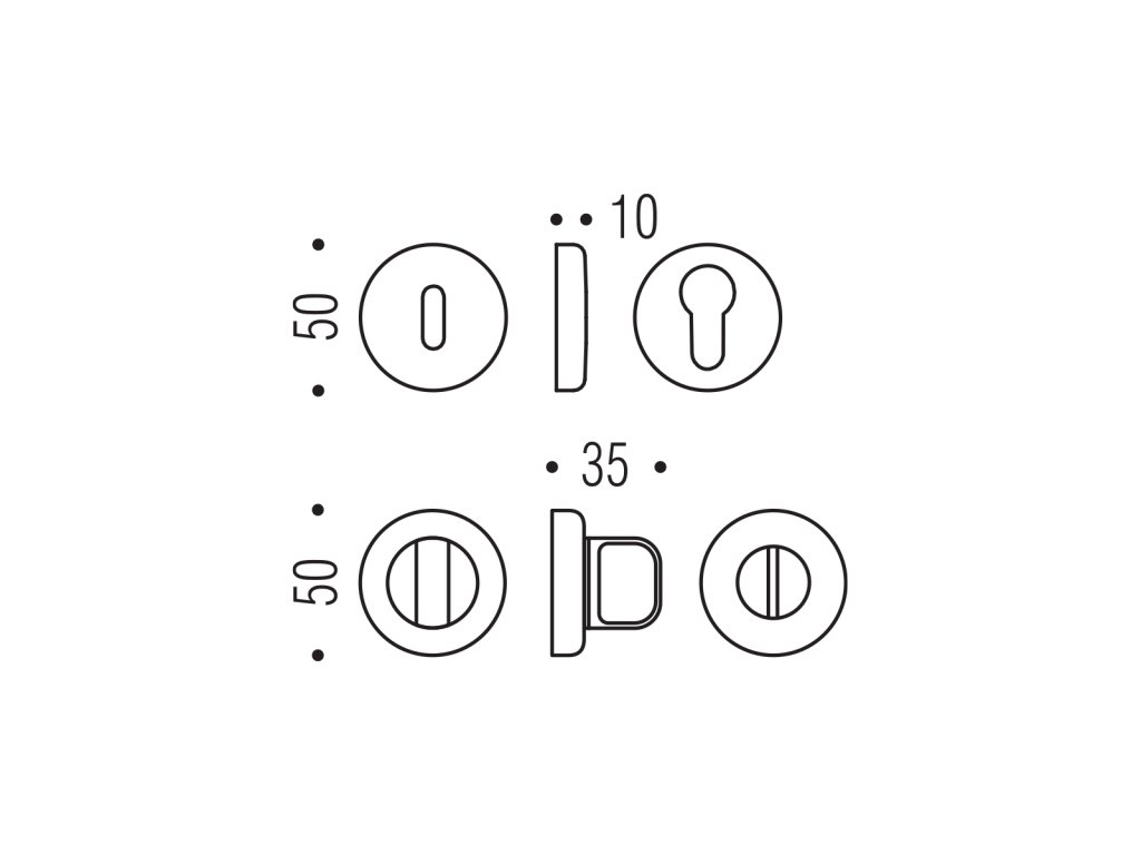 Rozetová kľučka na interiérové dvere Robodue od Colombo Design je vyrobená z materiálu Cromall®. Ide o špeciálnu zliatinu zinku, hliníka, horčíka a medi, vďaka čomu je materiál odolný voči korózii a opotrebovaniu, ľahký, no zároveň pevný a elegantný – s kvalitnými povrchovými úpravami, ako chrómovanie či matné prevedenia. Okrúhla rozeta má priemer 50 mm a hrúbku 10 mm.