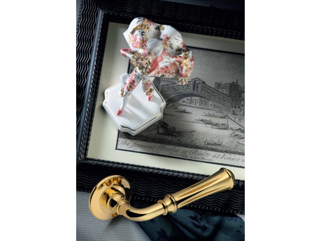 Rozetová kľučka na interiérové dvere Colombo Venezia z kolekcie Antologhia je vyrobená z mosadze a je povrchovo upravená. Okrúhla rozeta má priemer 45 mm a hrúbku 5 mm.