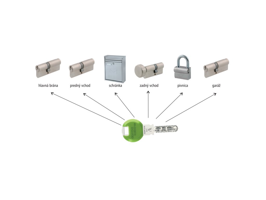 Pri zjednotení štyroch vložiek je potrebné prirátať 3x cenu zjednotenia a zákazník dostane 3 alebo 5 vlastných kľúčov pre celý systém podľa vybranej bezpečnostnej vložky. Zjednotenie vložiek na spoločný kľúč je možné len v rámci jedného typu vložky.