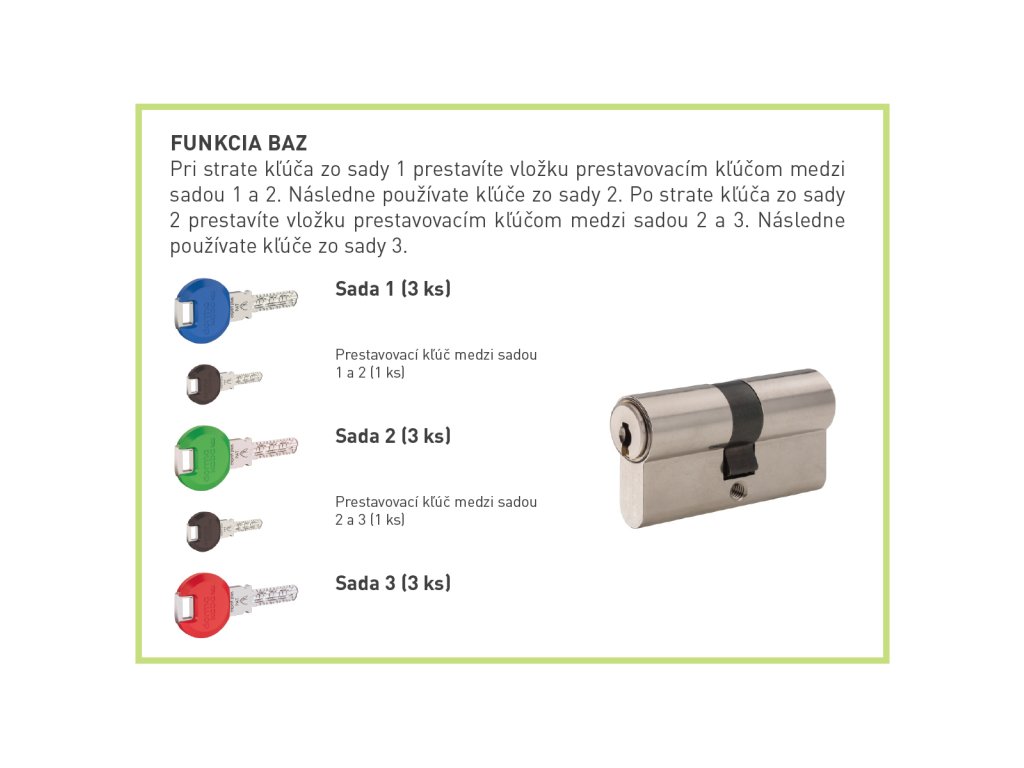 Pri strate kľúča zo sady 1 prestavíte vložku kódovacím kľúčom medzi sadou 1 a 2. Následne používate kľúče zo sady 2. Po strate kľúča zo sady 2 prestavíte vložku kódovacím kľúčom medzi sadou 2 a 3. Následne používate kľúče zo sady 3.