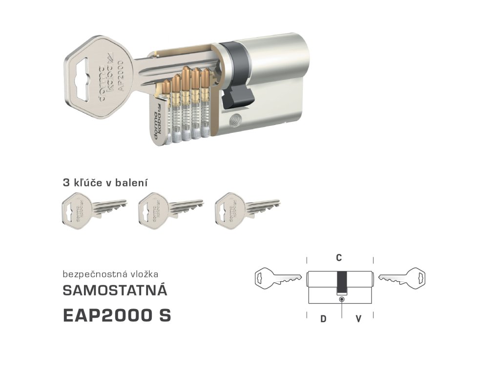 Precízne spracovanie a kvalitné materiály zaručujú dlhú životnosť a funkčnosť obojstrannej samostatnej cylindrickej bezpečnostnej vložky EAP2000 S.