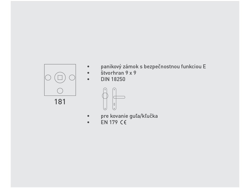 Mechanický panikový zámok s bezpečnostou funkciou "E" pre kovanie guľa/kľučka.