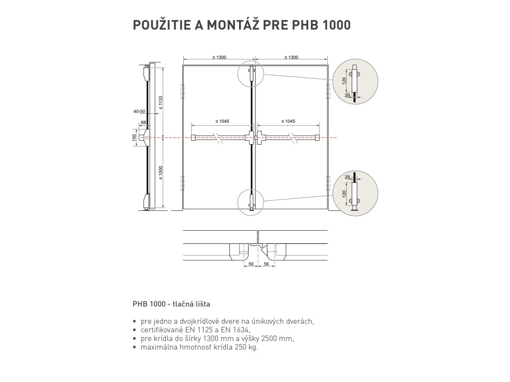 DK - PANIKOVÉ KOVANIE PHB 1202/1202 - 4-bodové zaistenie D2/2H-2D NEM - nerez matná