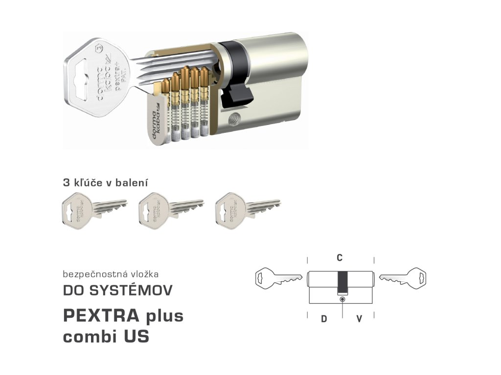 Vložka PEXTRA plus combi US je určená pre uzamykacie systémy (US).