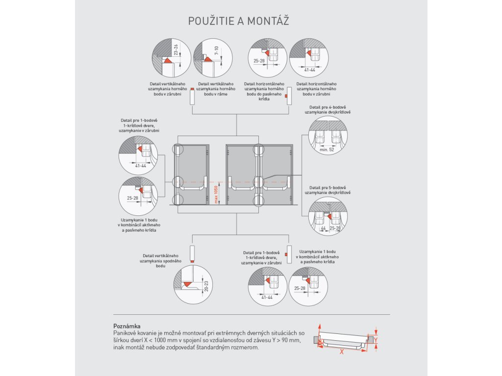 Tieto kovania sa montujú na dvere, ktoré sú súčasťou núdzových východov a protipožiarnych únikových ciest.