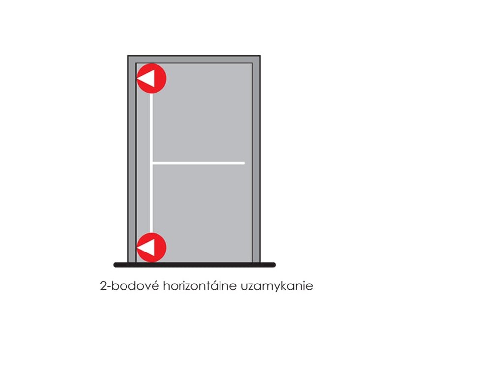 Jednokrídlové dvere s dvojbodovým zaistením s bočnou západkou D1/2B - 2-bodové horizontálne uzamykanie, je nutné použiť samozatvárač a sú určené pre protipožiarne a dymotesné dvere.