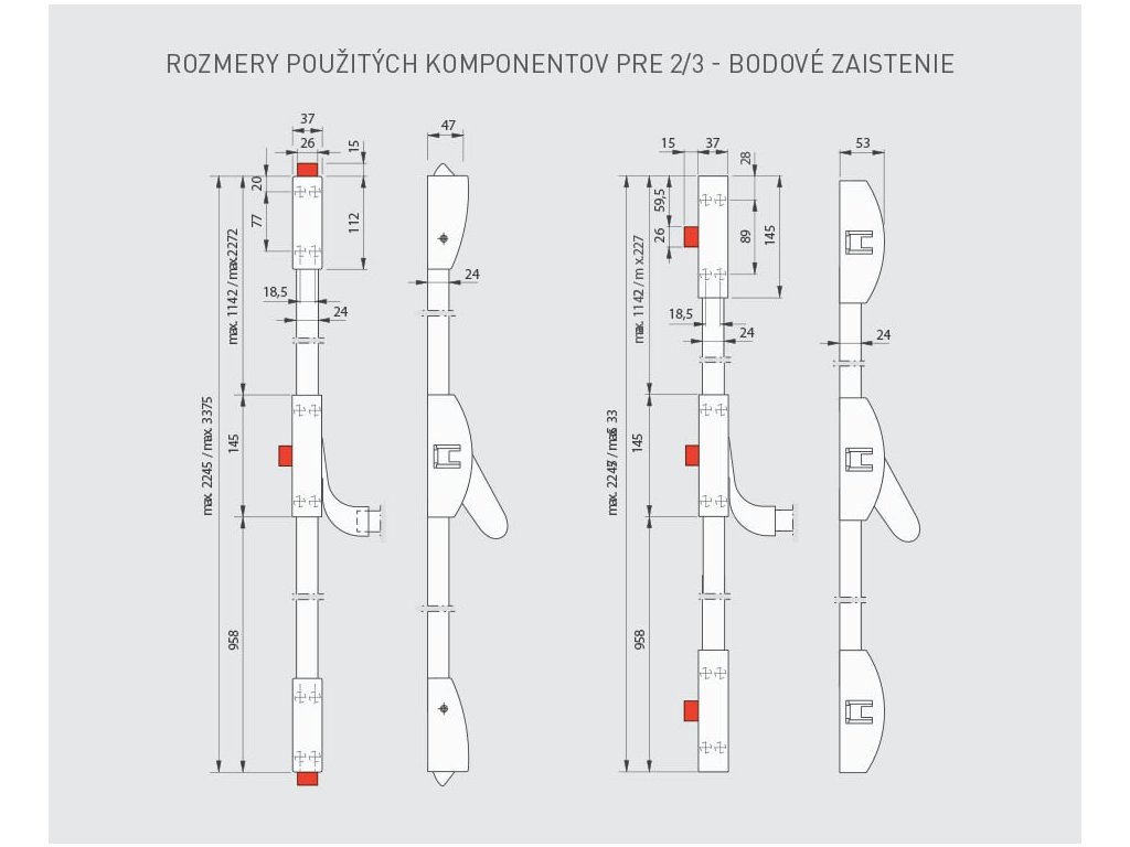 2. set D1/1B-1H-1D pre šírku dverného krídla do 1 300 mm s max. výškou 2 270 mm obsahuje: