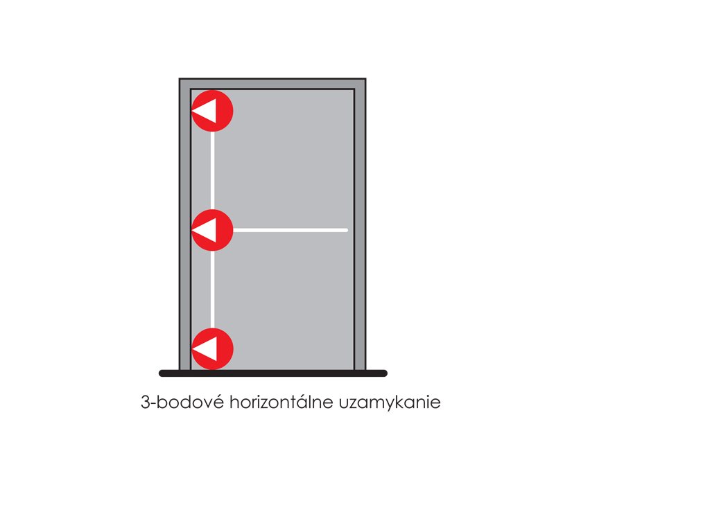 Jednokrídlové dvere s trojbodovým zaistením s bočnou západkou D1/ 3B – 3-bodové horizontálne uzamykanie, je nutné použiť samozatvárač a sú určené pre protipožiarne a dymotesné dvere.