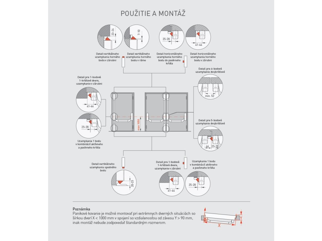 Tieto kovania sa montujú na dvere, ktoré sú súčasťou núdzových východov a protipožiarnych únikových ciest.