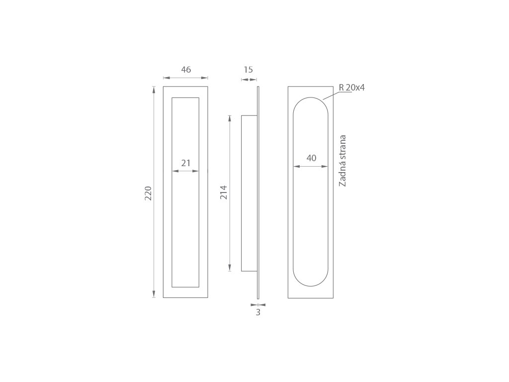 Drevená mušľa na posuvné dvere má výšku 220 mm, šírku 46 mm a zádlab 15 mm. Montáž mušle lepením. Cena je uvedená za kus.