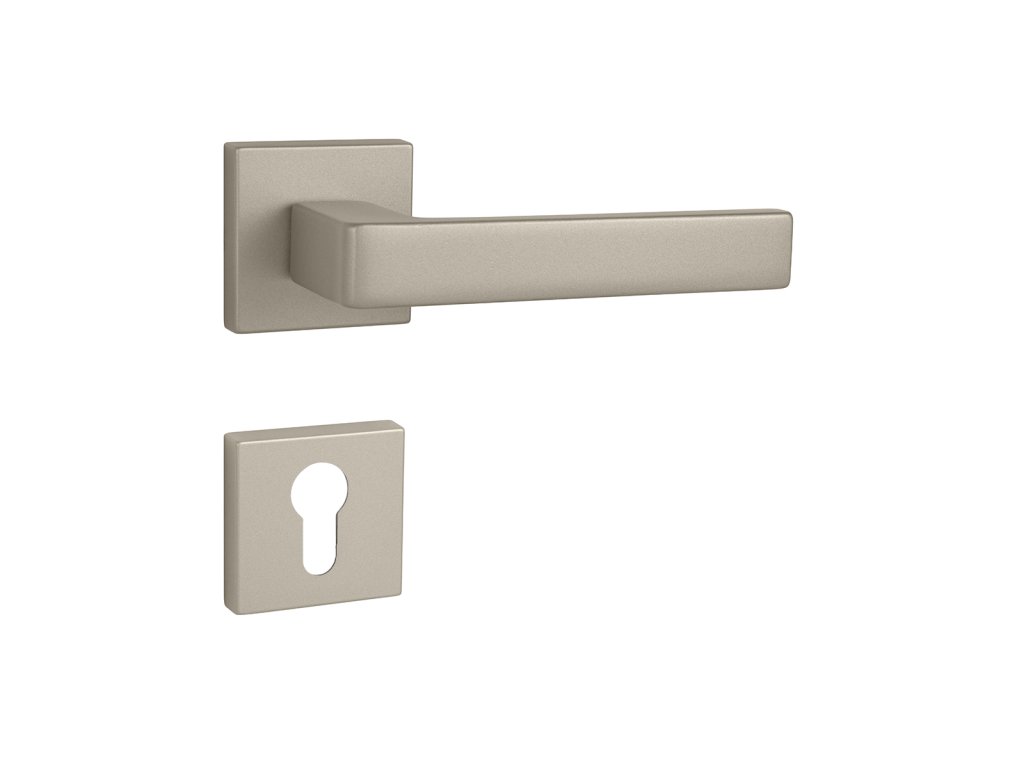 Rozetová kľučka na interiérové dvere s hranatou rozetou je vyrobená z materiálov vysokej kvality – zamak a je povrchovo upravená. Rozeta má rozmery 50 mm x 50 mm a hrúbku 10 mm.
