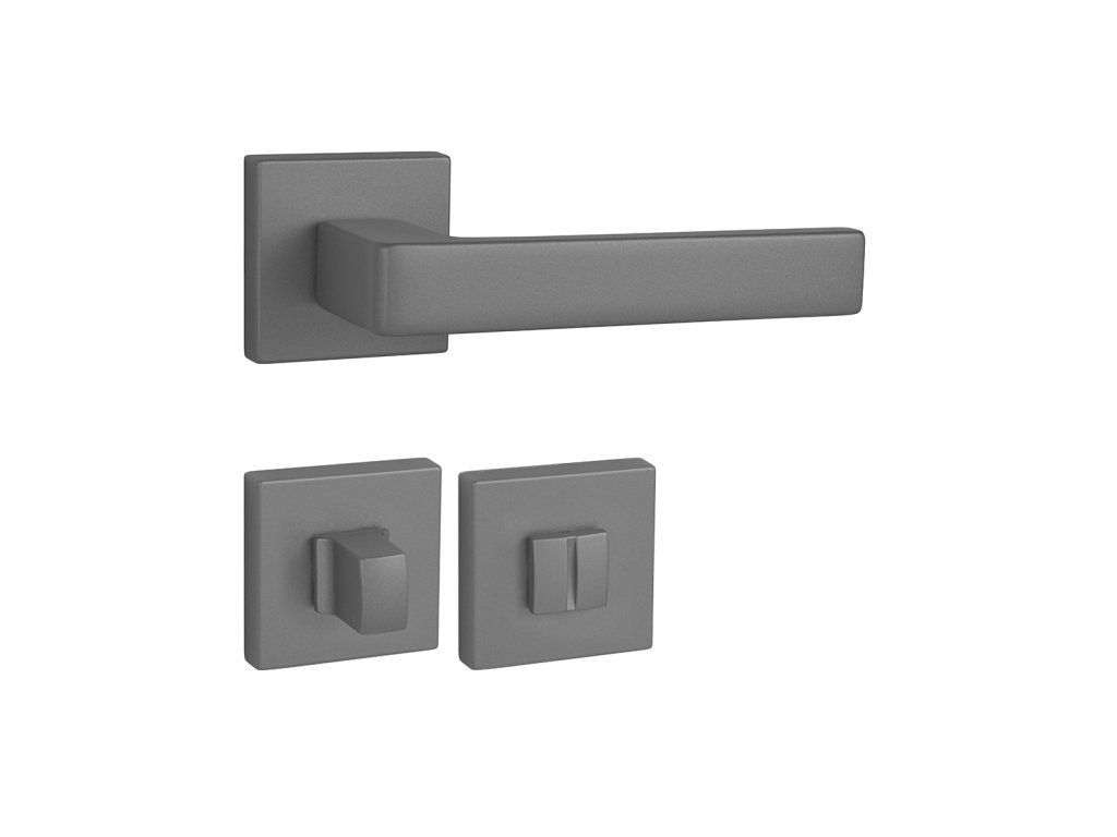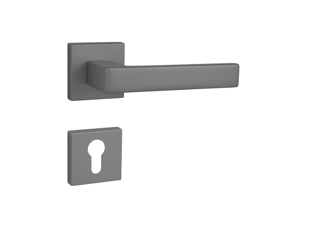 Rozetová kľučka na interiérové dvere s hranatou rozetou je vyrobená z materiálov vysokej kvality – zamak a je povrchovo upravená.