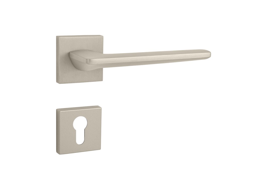 Rozetová kľučka na interiérové dvere s hranatou rozetou je vyrobená z materiálov vysokej kvality – mosadz / zamak a je povrchovo upravená. Rozeta má rozmery 50 mm x 50 mm a hrúbku 10 mm.